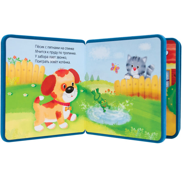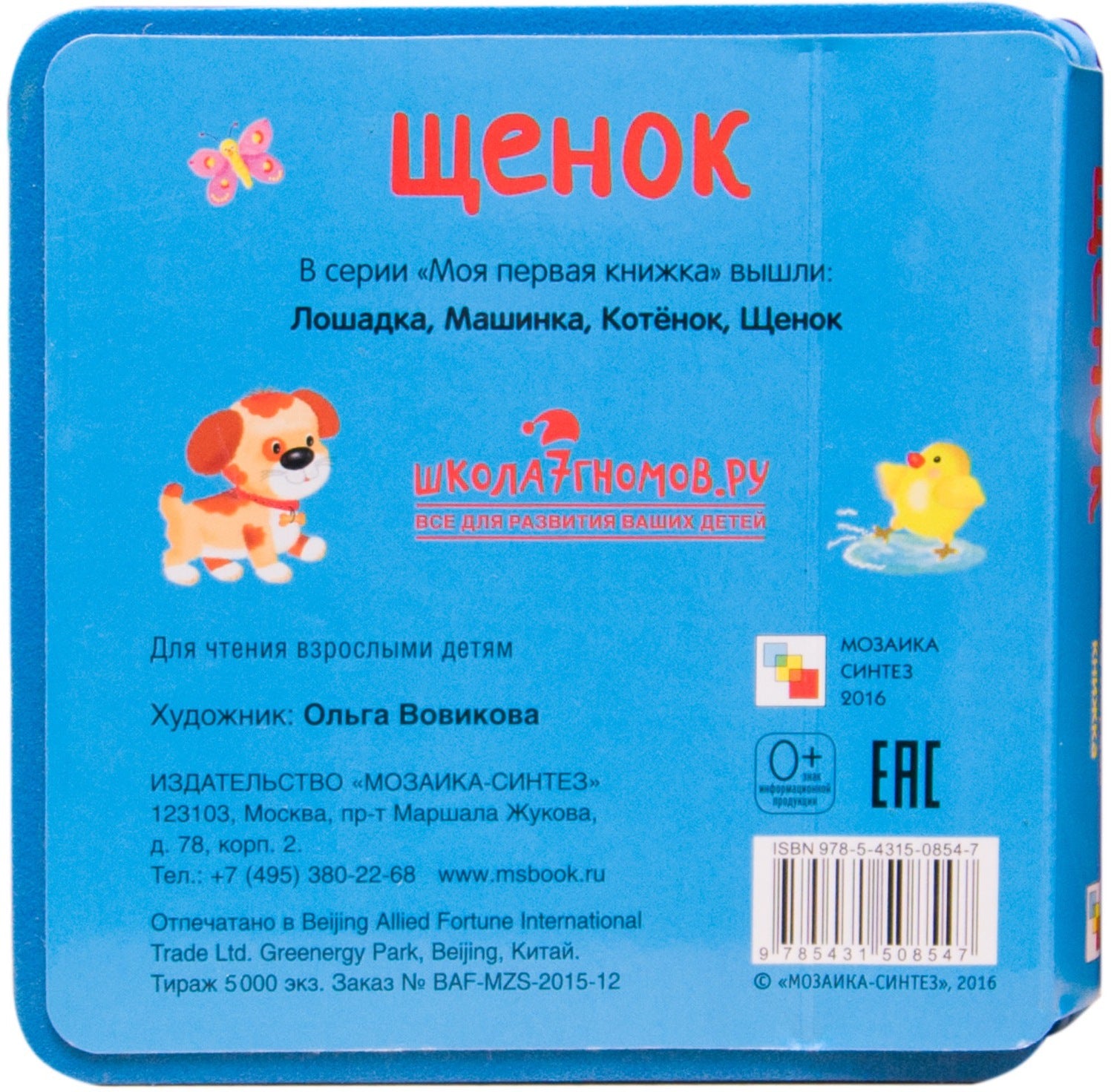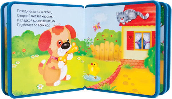 Щенок (Мои первые книжки), книжка-игрушка на пене EVA Книжка-плюшка «Щенок» серии «Мои первые книжки» познакомит Вашего ребенка с веселым щенком. Маленький читатель с удовольствием будет рассматривать красочные иллюстрации и слушать добрые стихи о его приключениях. Знакомство с первой книжкой будет веселым и интересным: малыш сможет полистать ее, потрогать объемную фигурку щенка на обложке и даже попробовать странички «на зуб», ведь они изготовлены из пены EVA – легкого и безопасного материала.