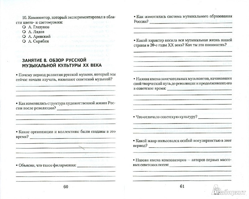 Рабочая тетрадь содержит практические задания по темам, изложенным в учебнике "Музыкальная литература. Русская музыка XX века. 4-й год обучения". Эти задания разнообразны по формам: теоретические, практические, творческие, обобщающие, тестовые. В нее также включены дополнительные материалы, кроссворды. Все это расширяет кругозор учащихся, помогает в формировании собственного мнения о музыке и приучает к творческой работе.Рабочая тетрадь точно соответствует содержанию учебника, для которого предназначена.7-е издание.