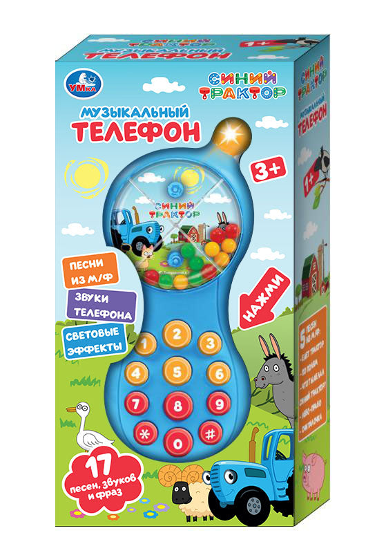 Музыкальный телефон СИНИЙ ТРАКТОР 17 песен,звуков и фраз.кор.бат Умка в кор.2*120шт