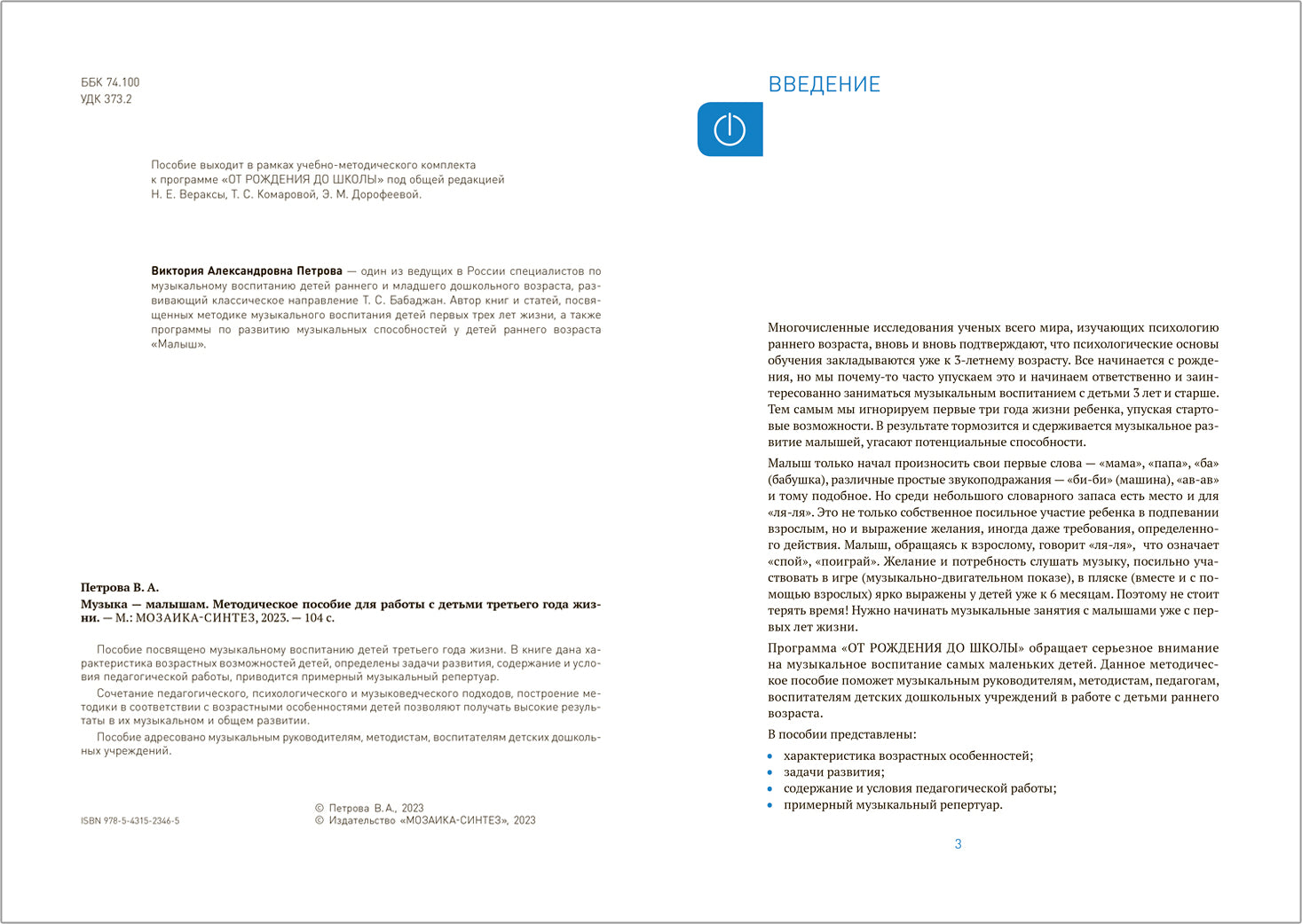 Музыка — малышам. 2-3 года. Методическое пособие. ФГОС Пособие издано в рамках учебно-методического комплекта к программе «ОТ РОЖДЕНИЯ ДО ШКОЛЫ». Пособие посвящено музыкальному воспитанию детей третьего года жизни. В книге дана характеристика возрастных возможностей детей, определены задачи развития, содержание и условия педагогической работы, приводится примерный музыкальный репертуар. Сочетание педагогического, психологического и музыковедческого подходов, построение методики в соответствии с возрастными особенностями детей позволяют получать...