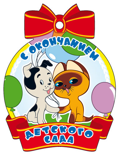 М2-12530 Медаль. С окончанием детского сада (из мультфильма Котенок по имени Гав) (с блестками в лаке)
