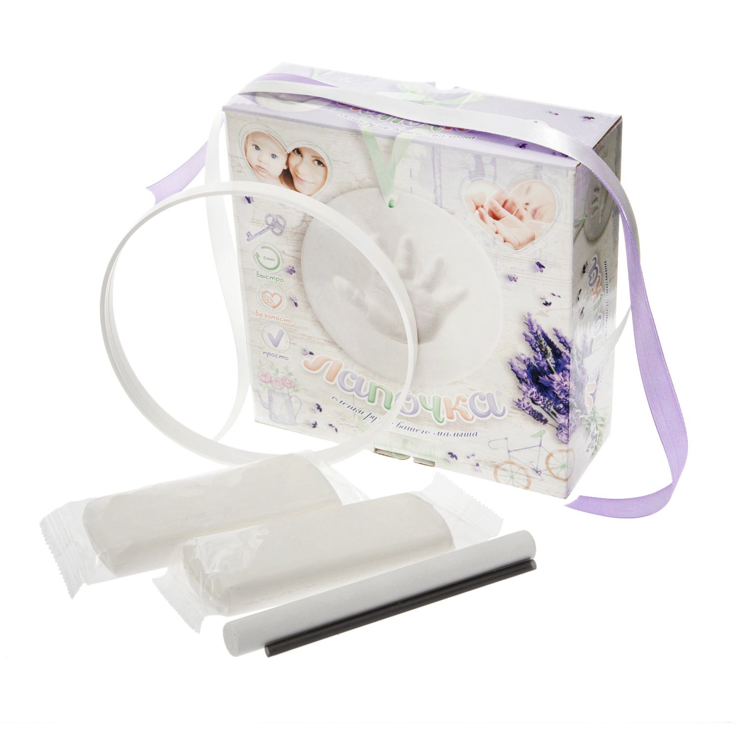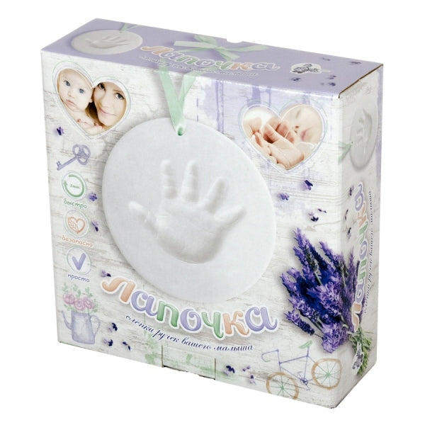 Handling time: 24 days Отличный подарок молодым родителям на рождение малыша!Оговоримся сразу, набор для слепков ручек и ножек ни в коем случае не является детской игрушкой, он предназначен только для взрослых.Первый год жизни малыши растут чрезвычайно быстро, и счастливые родители хотят увековечить эти драгоценные мгновения жизни своей крохи, оставить след очаровательных слепков ручек или ножек для семейной истории.В комплекте набора для слепков ручек и ножек «Лапочка» есть все необходимое для того, чтобы без сложных манипуляций сделать бесценный сувенир на память:- самозатвердевающая полимерная глина является основой набора;- рамка для формирования круга;- две цветных ленточки на выбор, чтобы повесить драгоценный слепок на стену;- приспособления для раскатки полимерной глины и пробивки отверстия в слепке;- подробная инструкция по работе с набором.Глина для слепков совершенно безопасна, не токсична, не требует тепловой обработки и позволяет сделать несколько проб до высыхания. Тем не менее, при получении слепков ручек и ножек, настоятельно рекомендуем соблюдать несколько простых правил:- держать подальше от малыша мелкие предметы;- не позволяйте ребенку играть с глиной, брать в рот, тереть глаза;- до и после создания отпечатков помойте ножки и ручки ребенка.«Десятое королевство» не единственный производитель наборов для «увековечивания» отпечатков ножек и ручек малыша, но, пожалуй, первый, кто предложил «разумную» цену при добротном качестве.