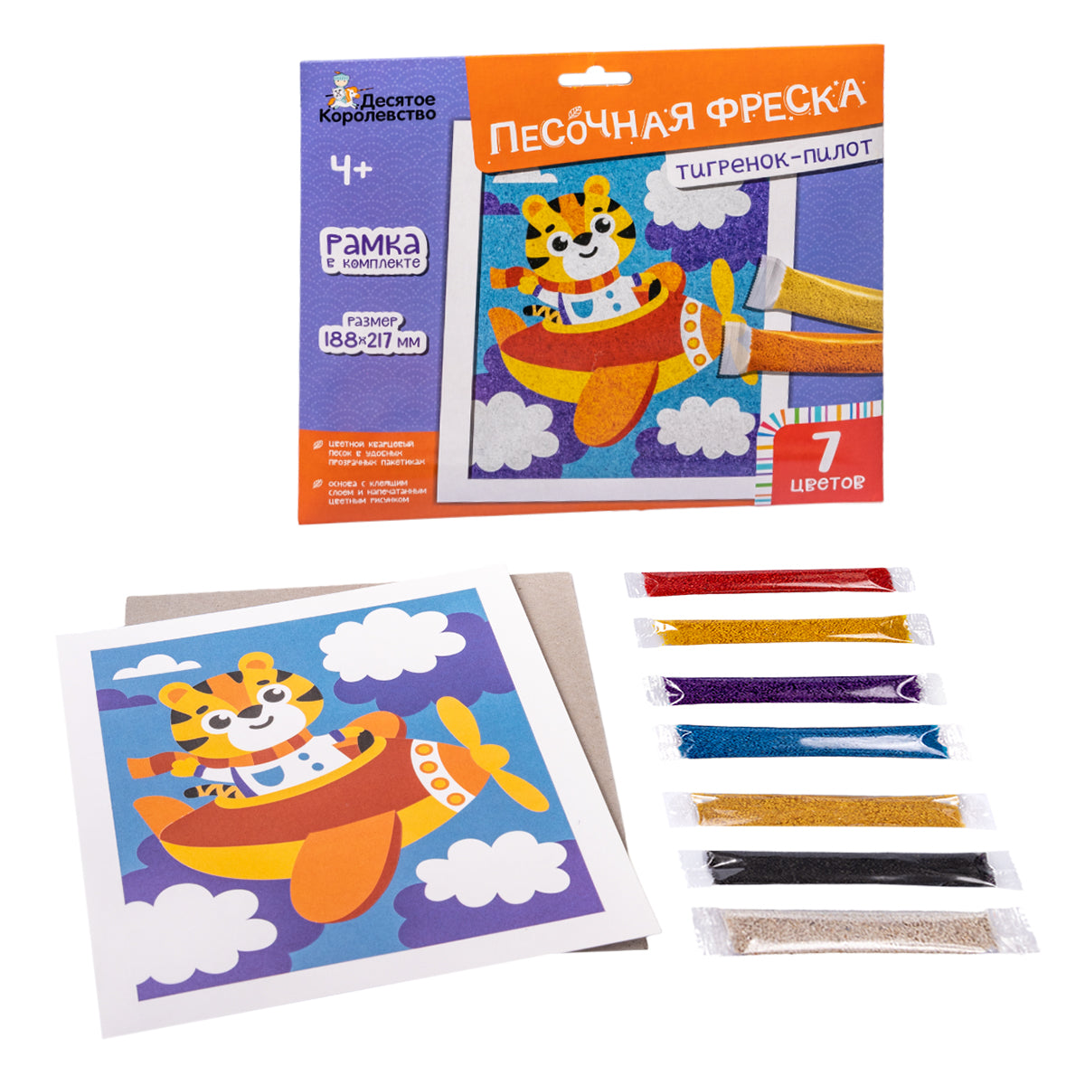 Набор для творчества. Песочная фреска "Тигренок-пилот" (7 цветов, 188х217 мм)