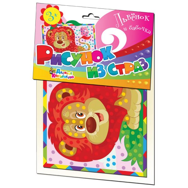 Красивые картинки из стразСимпатичный и веселый Львенок с игривой бабочкой на хвосте не оставит равнодушным любого ребенка. Кажется, что картинка вот-вот оживет и Львенок запоет свою веселую песенку, даря хорошее настроение окружающим. Чтобы приблизить этот момент, надо украсить рисунок стразами, которые входят в состав набора.Страз 182шт, с некоторым запасом. Они 5 цветов, диаметр каждой блестки 6 мм, яркие, блестящие - «так и просятся в рот». Поэтому контроль со стороны взрослого необходим.Как украсить стразами рисунок? Для этого необходимо выбирать стразы нужного цвета, отделять их от общего цветного блока и приклеивать на рисунок в «правильном» месте. Блестящий результат понравится абсолютно всем, как родителям, так и детям.Рисунок из страз «Львенок и бабочка», впрочем как и остальные игры серии, помогают развить у детей творческие способности, усидчивость, внимание и мелкую моторику рук.Еще раз не забывайте про мелкие детали и удачи!Рисунок из страз «Львенок и бабочка» артикул 01649 производства «Десятого королевства» можно приобрести во многих магазинах страны, а можно сэкономить время и деньги, вспомнив, что вы сейчас на сайте производителя этого товара и купить его здесь можно по отпускной цене предприятия.