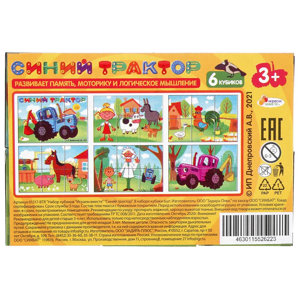 Набор из 6-и кубиков пленка СИНИЙ ТРАКТОР настольные игры ИГРАЕМ ВМЕСТЕ в кор.54наб