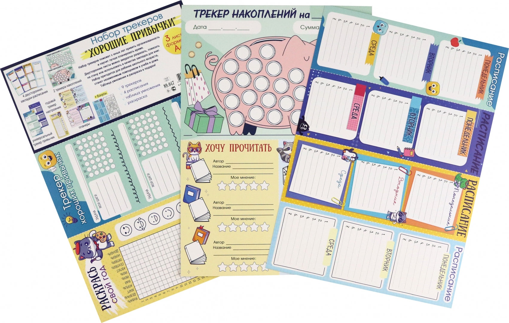Набор трекеров для детей поможет с юных лет привить ребенку организованность и научит лучше планировать время. Двусторонние листы можно аккуратно разрезать, повесить на стену или использовать в качестве закладок для книг. Набор органайзеров пригодится для ребенка школьного возраста, станет незаменимым помощником в учебе и дома. Таблица умножения и небольшая раскраска в подарок!В наборе: 9 трекеров, 4 расписания, таблица умножения, раскраска.Материал изделия - плотный картон.