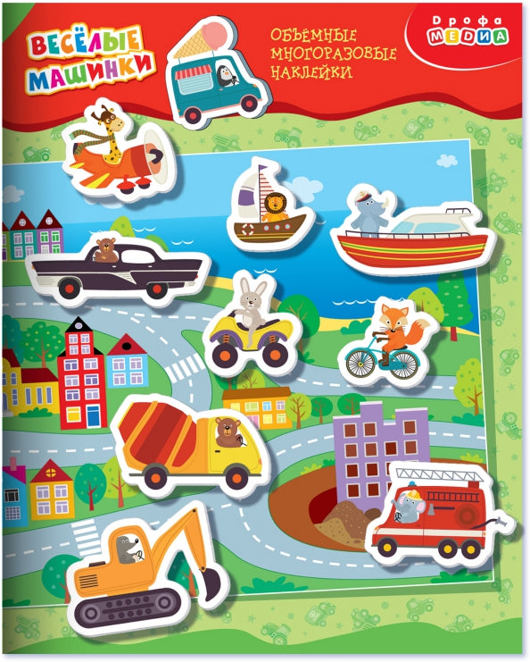 Наклейки объемные многоразовые Дрофа-Медиа Весёлые машинки