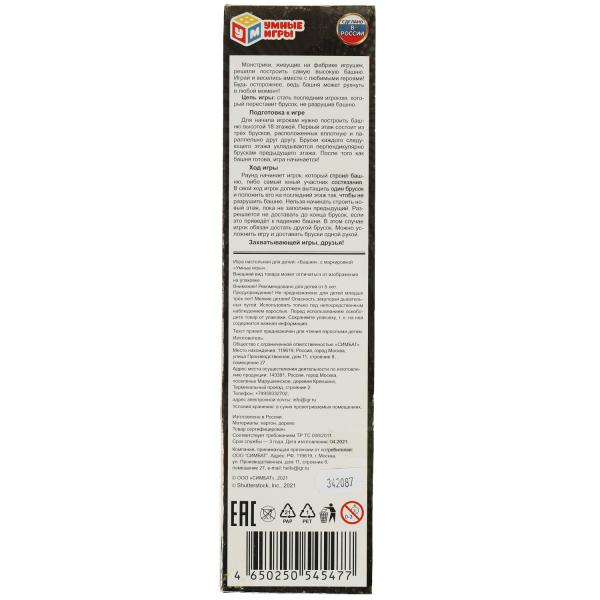 Handling time: 24 days Игрушка "Настольная игра. Приключения монстриков. Башня. 80*80*300 мм. 54 бруска. Умные игры в кор.9шт". Размер: 0.0233.