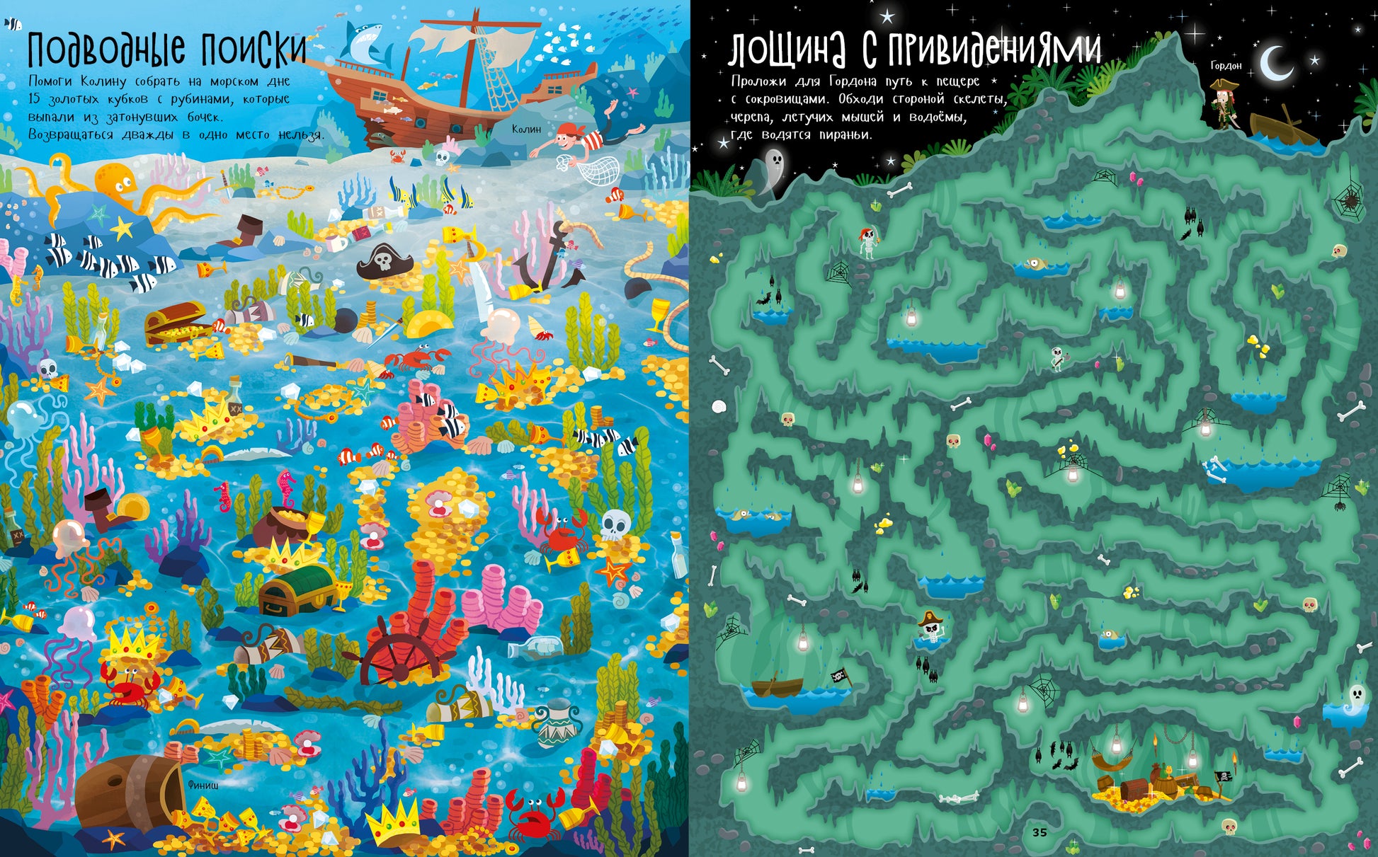 Handling time: 19 days 3 фишки: - Книга-игра для развития логики, пространственного мышления и мелкой моторики - Удобный формат и мягкая обложка делают книгу незаменимой в поездках с детьми - Прекрасный подарок для мальчика! Описание книгиВас ждет увлекательное путешествие в команде отважных пиратов: прокладывайте безопасный маршрут к сокровищам, учитесь ловить рыбу и варить уху, знакомьтесь с подводным миром, составляйте пиратскую карту и сражайтесь с морским чудовищем. В этой книге вы найдёте лабиринты на любой вкус. Проходя лабиринты, прорисовывая каждое задание, ребенок подготавливает руку к письму, развивает мелкую моторику и пространственное мышление. Удобный формат и мягкая обложка – книгу удобно брать с собой в путешествие или в гости. Эта красочная книжка увлечет ребенка дома, в гостях, в любом путешествии: в самолете, поезде и на пляже. Лайфхак для родителей Как говорят специалисты, лабиринты – одно из лучших заданий для подготовки ребенка к учебе. Сначала, лет в 5 ребенок будет водить по лабиринту пальчиком, помогая себе, а к 7 годам уже должен научиться следить за дорожками глазами. В любом возрасте эта книжка будет отличным занятием, потому что картинки здесь милые, задания оригинальные, а герои смешные. И у каждого задания есть своя удивительная предыстория. Что развиваем? - Внимание- Мелкая моторика- Сообразительность- Логическое мышление- Творческое мышление