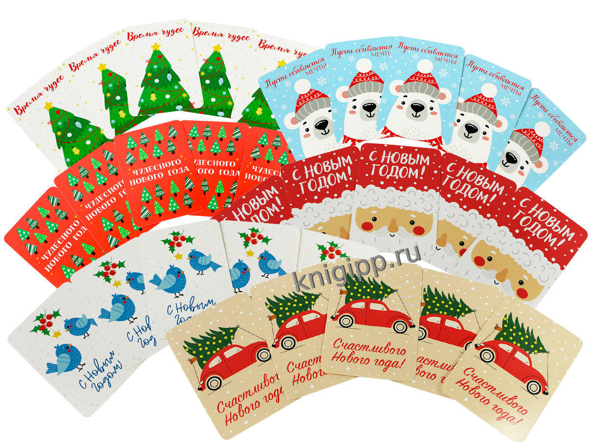 Handling time: 30 days Новая серия новогодних мини-открыткок способна сделать любой подарок особенным. Наши открытки выполнены в различных стилях и тематиках. Каждая из них уникальна и создаст неповторимую атмосферу праздника. Мы предлагаем разнообразные дизайны – от традиционных изображений в советском стиле до забавных картинок с животными. Добавьте немного волшебства в свои подарки, дополнив их нашими открытками! В наборе представлено 30 открыток: 6 разных сюжетов, каждая из них представлена в количестве 5 экземпляров.