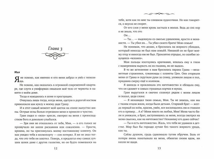 Handling time: 19 days Аррон Ридден – секретный инопланетный агент, потерпевший крушение на богом забытой планете и оказался в плену. Отныне, он – развлечение.Мия Нейл – робкая и немая девушка. Она оказалась в этом ужасном мире ещё младенцем. Её обязанности – убирать за пленными после кровавых боёв и излечивать их раны своим даром.Он стремится к побегу и в его планы не входит никого спасать.Она давно перестала мечтать, верить и покорилась злому року.Смогут ли выбраться герои из этого ада или судьба навеки отвернулась от них?Всё изменится, когда он увидит терновые цветы на её спине – принадлежность к королевскому роду древней расы тёрнов. Пять причин купить 1История наполнена невероятными сюжетными поворотами. Читатель ждёт предсказуемый ход истории, но к своему приятному удивлению обнаруживает совершенно другие повороты. 2Текст искусно насыщен яркими переживаниями героев и красочными описаниями космических миров. Герои иногда шутят, иногда цинично высказываются, что позволяет им пережить все тяготы. 3Взгляд на фантастику глазами прекрасной половины будоражит воображение. 4Космические приключения: побег, другие планеты, выживание на грани тоже ждут вас. 5Эта книга станет напоминанием, что мы страдаем по тому, чего не имеем и не замечаем того, что уже у нас есть.