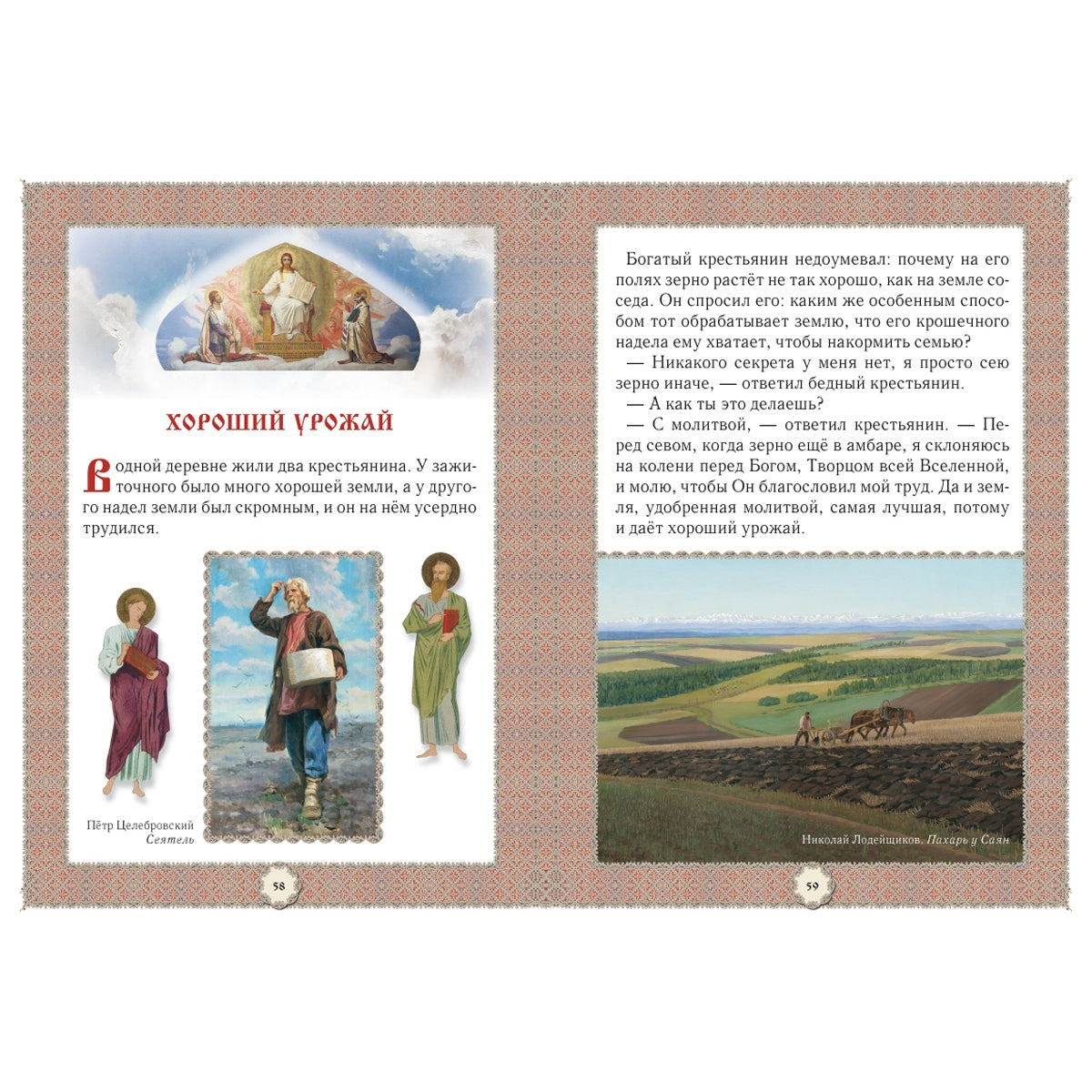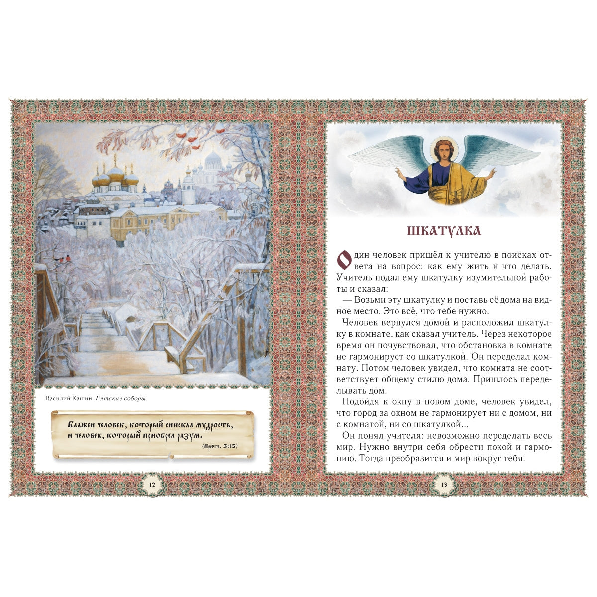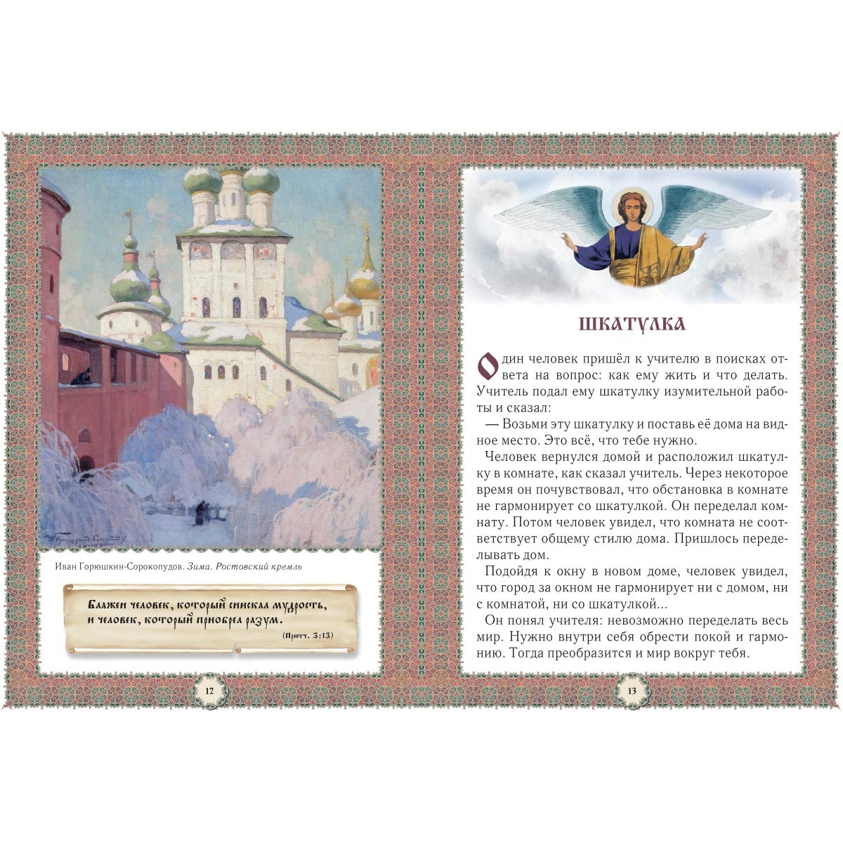 Притчи, собранные в книге, учат маленького читателя думать и чуть-чуть по-другому, не так, как он привык, смотреть на происходящие в жизни события. Эта книга - кладезь мудрости - будет интересна и взрослым, и детям.В этой книге собраны притчи из разных источников, но наших читателей они учат совершать осознанные поступки. Человек, влияя на жизнь других людей, помогает им жить или, наоборот, лишает сил. На примере жизни святых отцов наш читатель видит, что в основе их праведного существования - доброта и взаимопонимание.Книга оформлена картинами русских художников - в них представлена русская жизнь, какой она была в прошлые времена, когда Бог присутствовал в каждом доме, а душа человека радостно отзывалась на Слово Божье. В книге три части, каждая из которых начинается с библейских цитат, придающих содержанию особую глубину.Книга написана для детей 6-9 лет - дошкольников и младших школьников, а также их родителей. Не менее полезной окажется она и для учителей начальных классов, и для воспитателей детских садов, которые могут использовать отдельные элементы книги для проведения "уроков природоведения" - первого знакомства детей с такими природными явлениями, как восход и заход солнца, ветер, дождь, снег, радуга, вулканическая деятельность и пр.Цитаты из Библии, картины с библейскими сюжетами, рассказы из жизни праведников особым образом выстроили книгу, сделали ее полезной и даже необходимой нашему читателю. Она может долгие годы сопровождать человека, помогая ему в трудной ситуации принимать правильные решения. Она займет достойное место в домашней библиотеке.Эта книга, рассчитанная на восприятие детей, будет полезна и родителям: она поможет подкрепить их "воспитательные беседы" с детьми серьезными источниками. Да и назидание, выраженное в деликатной форме, воспринимается детьми гораздо лучше, чем суровая беседа немного уставшего воспитателя...Составитель: Астахова Н.