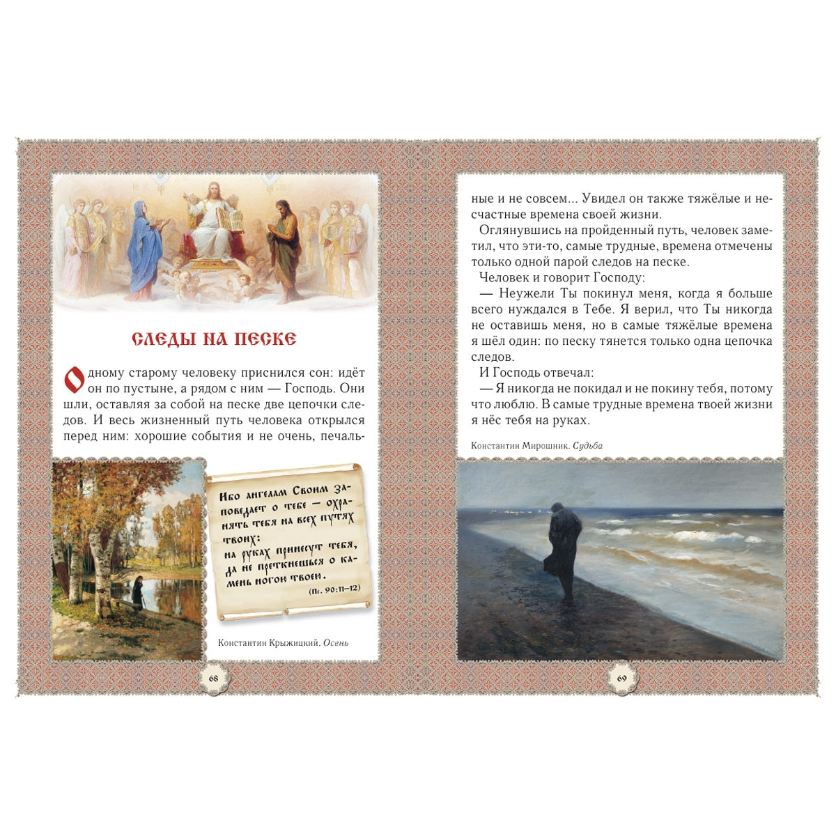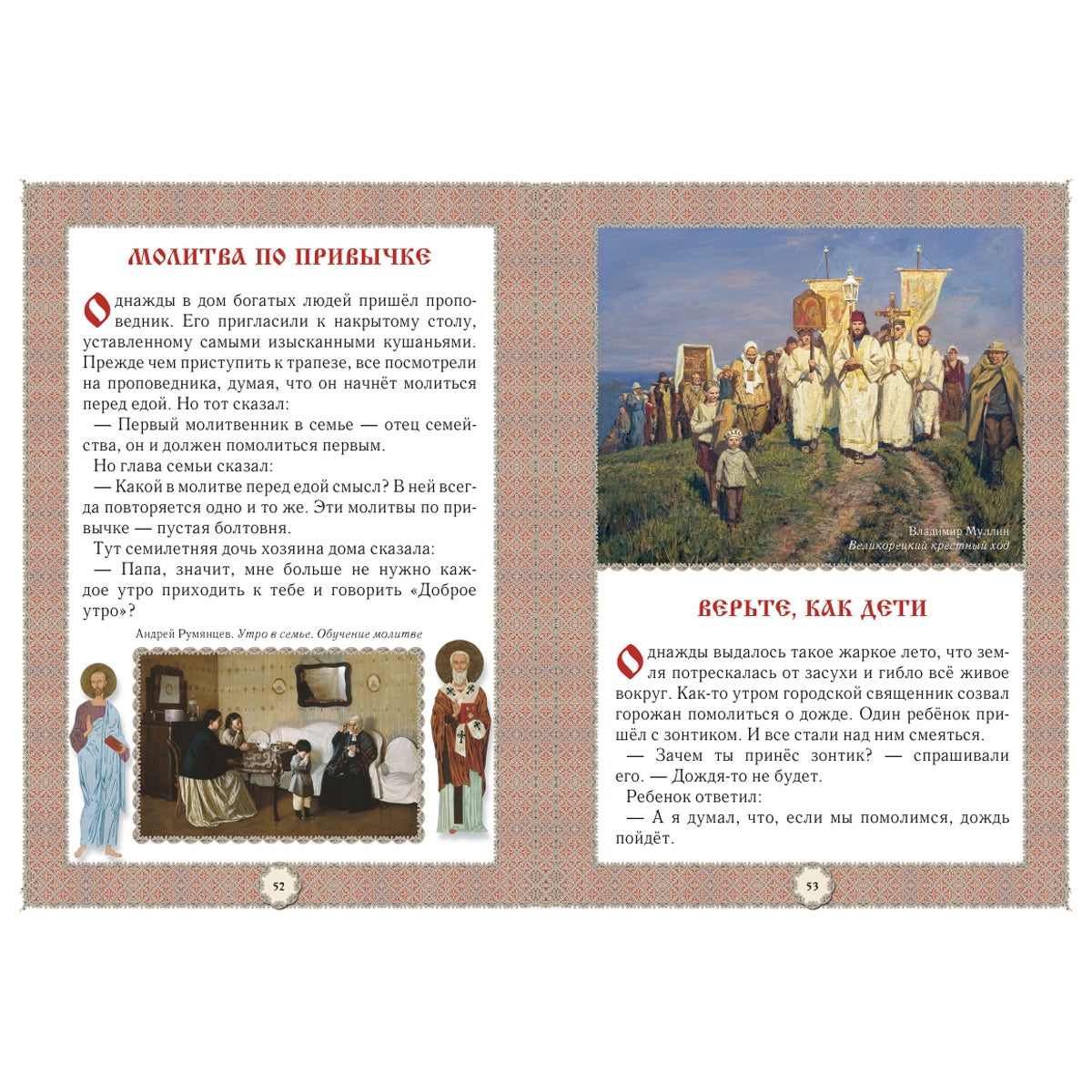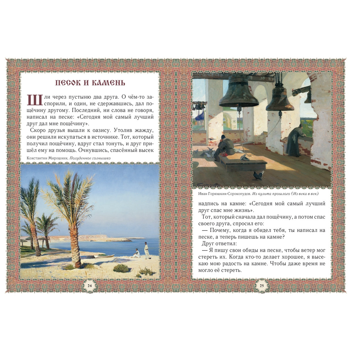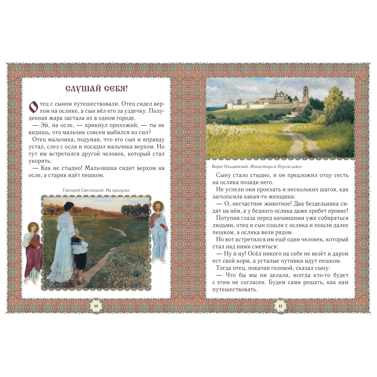 Притчи, собранные в книге, учат маленького читателя думать и чуть-чуть по-другому, не так, как он привык, смотреть на происходящие в жизни события. Эта книга - кладезь мудрости - будет интересна и взрослым, и детям.В этой книге собраны притчи из разных источников, но наших читателей они учат совершать осознанные поступки. Человек, влияя на жизнь других людей, помогает им жить или, наоборот, лишает сил. На примере жизни святых отцов наш читатель видит, что в основе их праведного существования - доброта и взаимопонимание.Книга оформлена картинами русских художников - в них представлена русская жизнь, какой она была в прошлые времена, когда Бог присутствовал в каждом доме, а душа человека радостно отзывалась на Слово Божье. В книге три части, каждая из которых начинается с библейских цитат, придающих содержанию особую глубину.Книга написана для детей 6-9 лет - дошкольников и младших школьников, а также их родителей. Не менее полезной окажется она и для учителей начальных классов, и для воспитателей детских садов, которые могут использовать отдельные элементы книги для проведения "уроков природоведения" - первого знакомства детей с такими природными явлениями, как восход и заход солнца, ветер, дождь, снег, радуга, вулканическая деятельность и пр.Цитаты из Библии, картины с библейскими сюжетами, рассказы из жизни праведников особым образом выстроили книгу, сделали ее полезной и даже необходимой нашему читателю. Она может долгие годы сопровождать человека, помогая ему в трудной ситуации принимать правильные решения. Она займет достойное место в домашней библиотеке.Эта книга, рассчитанная на восприятие детей, будет полезна и родителям: она поможет подкрепить их "воспитательные беседы" с детьми серьезными источниками. Да и назидание, выраженное в деликатной форме, воспринимается детьми гораздо лучше, чем суровая беседа немного уставшего воспитателя...Составитель: Астахова Н.