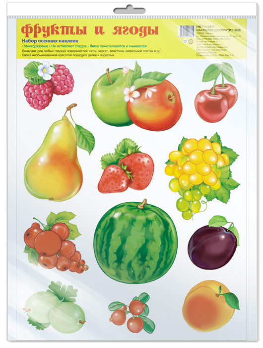 *НМТ1-13917 Набор осенних наклеек А4+ В ПАКЕТЕ. Фрукты и ягоды (в индивидуальной упаковке, с европодвесом и клеевым клапаном)