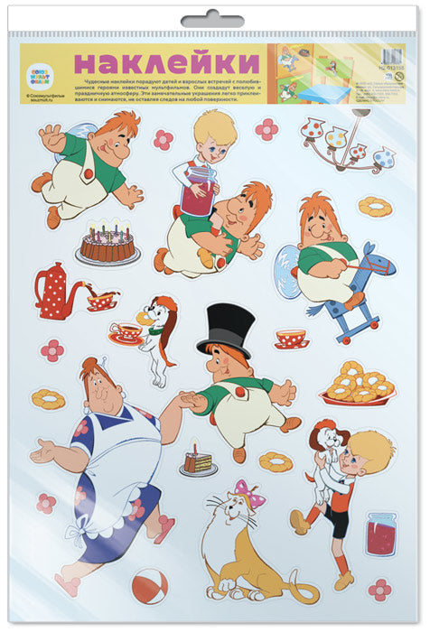 *Н2-13158 Декоративные наклейки В ПАКЕТЕ. Герои из мультфильма Малыш и Карлсон (УФ-лак, в индивидуальной упаковке, с европодвесом и клеевым клапаном)