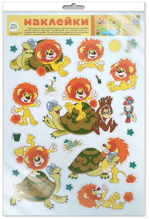 *Н2-13239 Декоративные наклейки персонажи мультфильма Львенок и Черепаха В ПАКЕТЕ (УФ-лак, в индивидуальной упаковке, с европодвесом и клеевым клапаном)