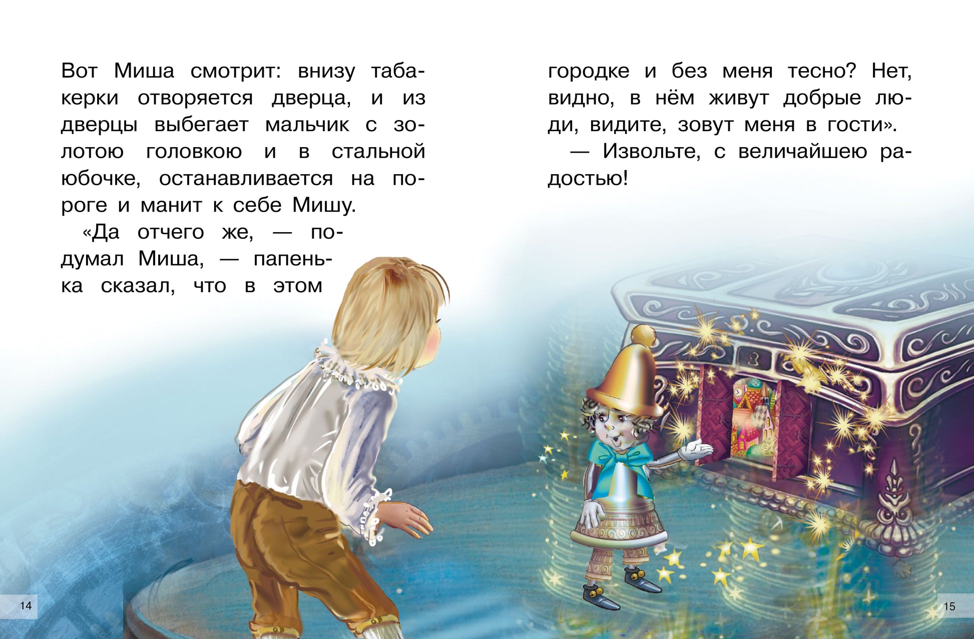 Handling time: 14 days В. Ф. Одоевский (1803–1869) считал, что детям — большим фантазерам следует рассказывать об окружающем мире в занимательной форме. Мальчик Миша, герой сказки «Городок в табакерке», чудесным образом попадает внутрь музыкальной шкатулки и знакомится с ее устройством.Для старшего дошкольного и младшего школьного возраста.