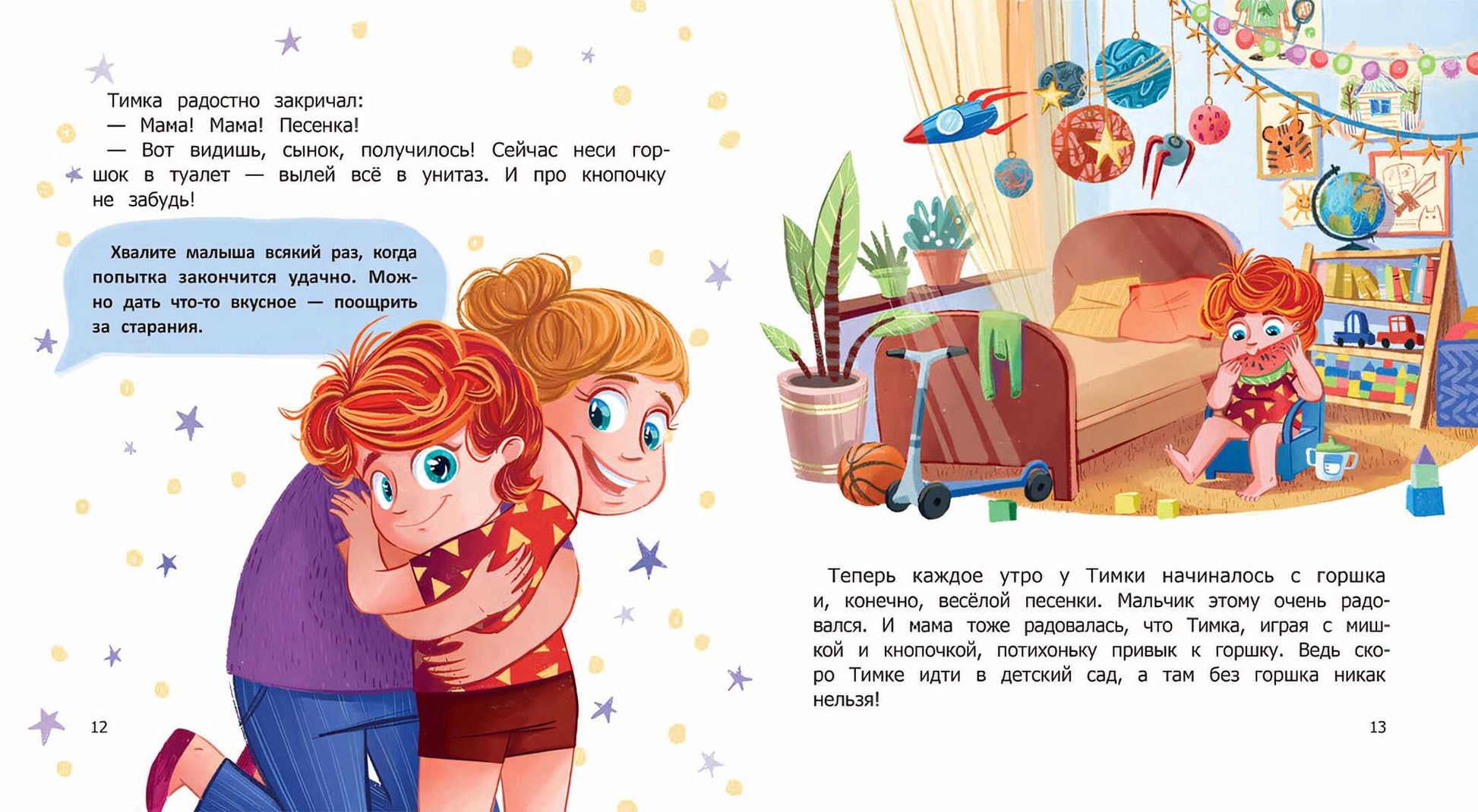 Орден Золотого Горшка Тимка стал совсем взрослым - у него уже есть горшок! А тем, кто обходится без подгузника и умеет ходить на горшок, и бегать легче, и гулять можно дольше. Конечно, всё получится не сразу, но Тимка справится. Прощай, подгузник, привет, горшок! В книге вы найдёте поучительную историю для малышей, а также полезные советы для родителей. Для совместного чтения детей и родителей.