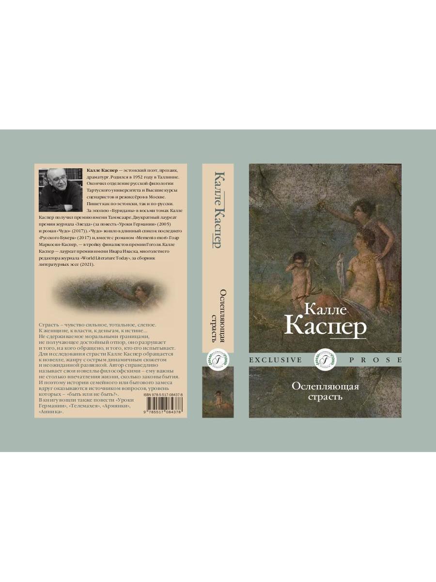 Handling time: 19 days Автор: Каспер Калле, «Ослепляющая страсть»: Страсть — чувство сильное, тотальное, слепое. К женщине, к власти, к деньгам, к истине… Не сдерживаемое моральными границами, не получающее достойный отпор, оно разрушает и того, на кого обращено, и того, кто его испытывает. Для исследования страсти Калле Каспер обращается к новелле, жанру с острым динамичным сюжетом и неожиданной развязкой. Автор справедливо называет свои новеллы философскими — ему важны не столько впечатления жизни, сколько законы бытия. И поэтому истории семейного или бытового замеса вдруг оказываются источником вопросов, уровень которых — «быть или не быть?».