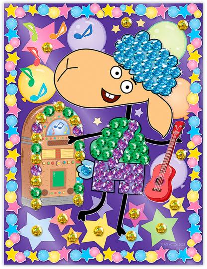 Отель у овечек. Мозаика из пайеток картина "Беня и музыкальный автомат"