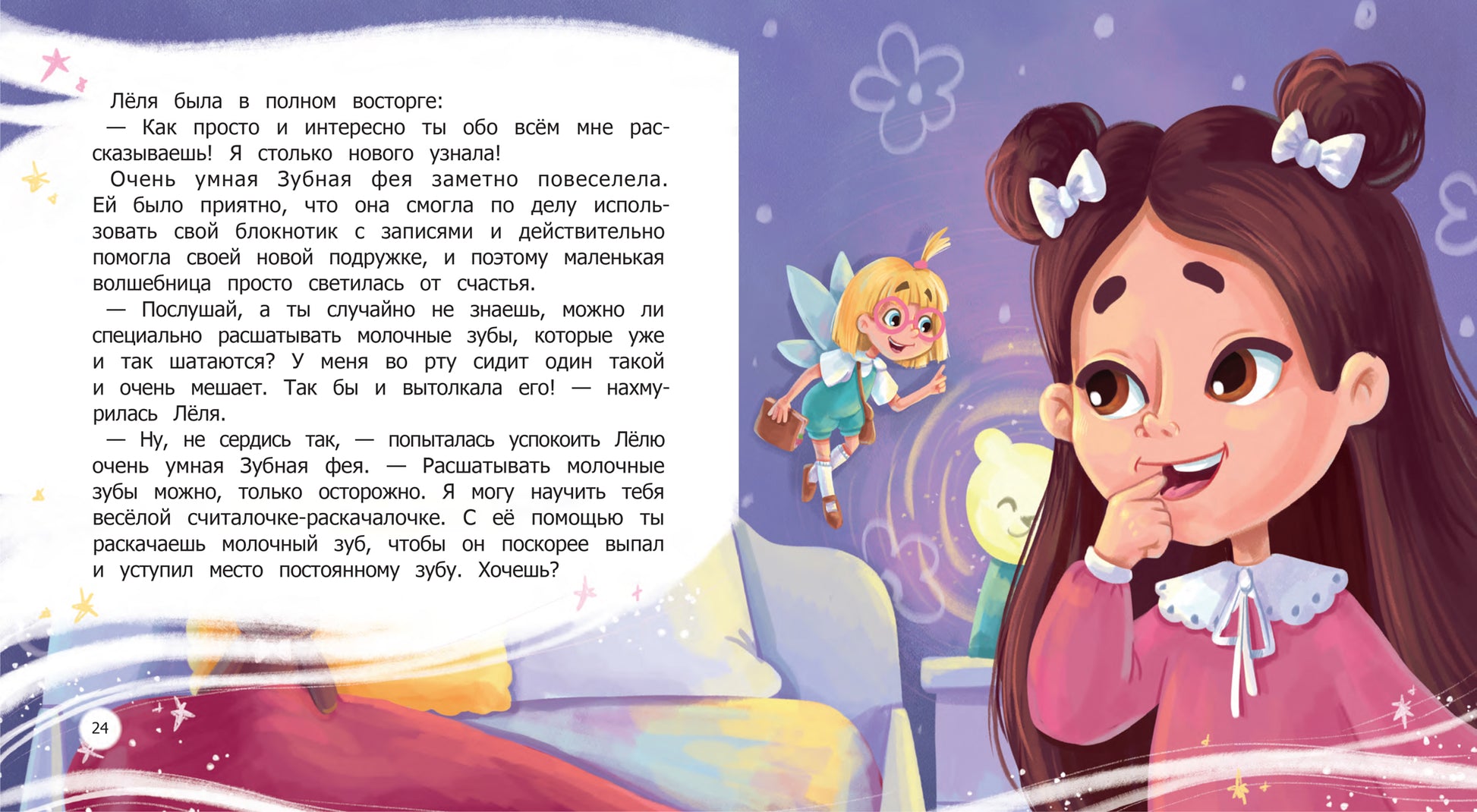 Handling time: 19 days Очень умная Зубная фея Вот и настал тот самый момент - у Лёли выпал первый зуб! Что же теперь делать? Конечно, ждать Зубную фею! Но наша фея не простая, а очень умная. Поэтому она начинает рассказывать Лёле о том, почему выпадают молочные зубы, как правильно проводить гигиену полости рта, в каких случаях можно самостоятельно удалить молочный зуб, а в каких - стоит обратиться к врачу. Весёлая история с полезными советами не только для детей, но и для их родителей.