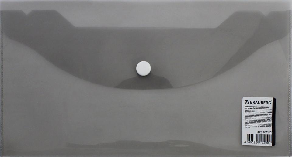 Папка-конверт из плотного прозрачного пластика.Закрывается на защелку-кнопку.Идеальное средство для транспортировки документов и различных мелких предметов.Размер: 250х135 мм.Плотность 180 мкм.Сделано в России.