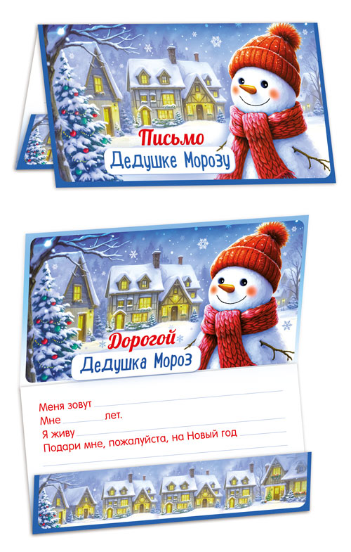 Какой праздник без открытки! Открытка дарит настроение, оставляет добрую память, выражает чувства. Даря открытку, мы вкладываем в нее частичку нашей души, ведь добрые пожелания всегда от сердца. А если эта открытка еще и письмо Дедушке Морозу, можете не сомневаться — этот Новый год останется в памяти вашего ребенка надолго. Все свои сокровенные желания ребенок адресует Деду Морозу, а вы поможете ему составить письмо. Это прекрасный повод пообщаться с ребенком, понять, чем он живет и что его волнует. Подарите ребенку праздник!