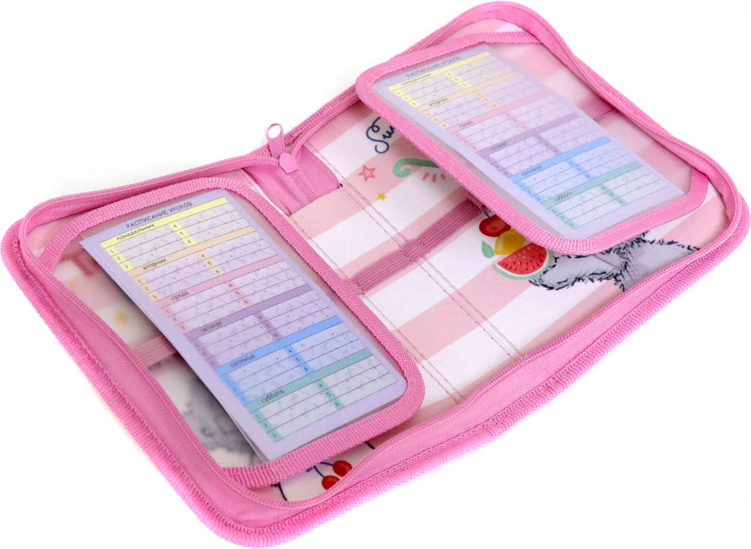 Handling time: 14 days Каркасный пенал с двумя откидными планками. Наружная часть изделия выполнена из высококачественного полиэстера, внутренняя - из тисненого ламинированного картона. Размер 200х140х40 мм. Вместительный практичный пенал для различных пишущих принадлежностей, ластика, линейки и прочих аксессуаров. На откидных планках расположены две карточки для расписания уроков, внутри полноцветный принт, соответствующий дизайну изделия.Пенал без наполнения.Материал: картон.Сделано в России.