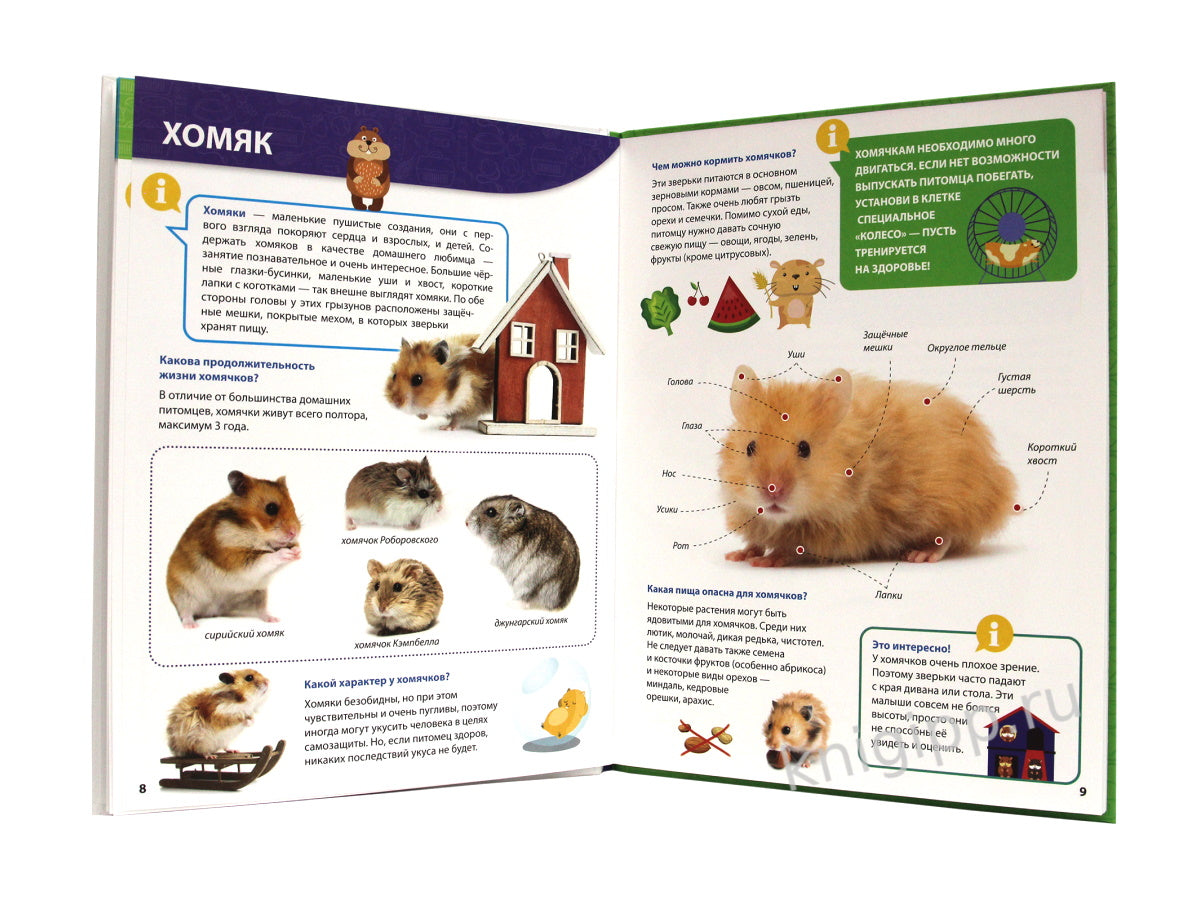 Перед вами яркая, увлекательная, познавательная книга. Раскрыв её, малыш познакомится с различными видами домашних питомцев, узнает, как правильно за ними ухаживать, чтобы сделать их жизнь максимально комфортной и безопасной. Энциклопедия ответит на множество вопросов, волнующих каждого ребёнка: зачем кошки трутся о ноги хозяина, каким видят наш мир собаки, в чём секрет языка хамелеона, для чего игуанам такие длинные когти, почему слизь улитки лечебная и многие другие.Для чтения взрослыми детям.