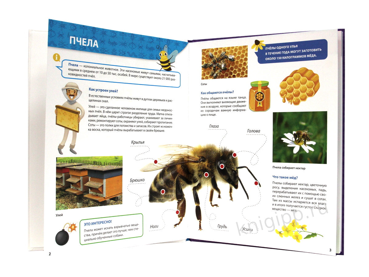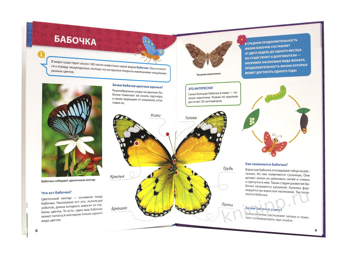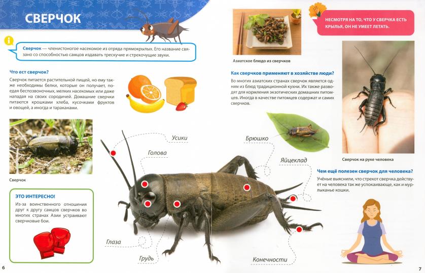 Handling time: 24 days Приглашаем всех маленьких любителей природы познакомиться с удивительными существами — насекомыми! На страницах яркой познавательной книги малыш встретит не только изображения уже знакомых бабочек и пчёл, но и таких редких представителей мира насекомых, как палочник, богомол и светлячок. Что ест кузнечик, как дышит водяной скорпион, почему клопа называют солдатиком — ответы на все эти вопросы, а также множество интересных фактов ребёнок найдёт в нашей увлекательной энциклопедии!Для чтения взрослыми детям.