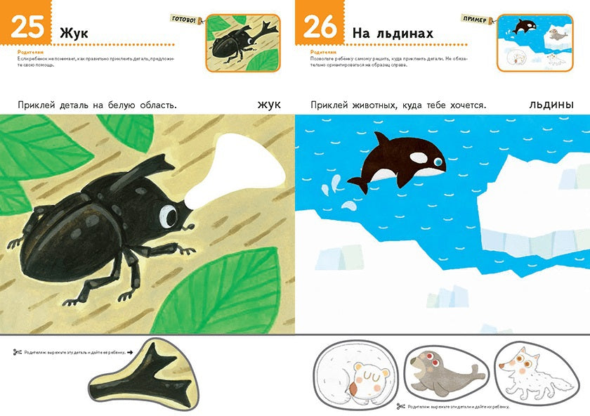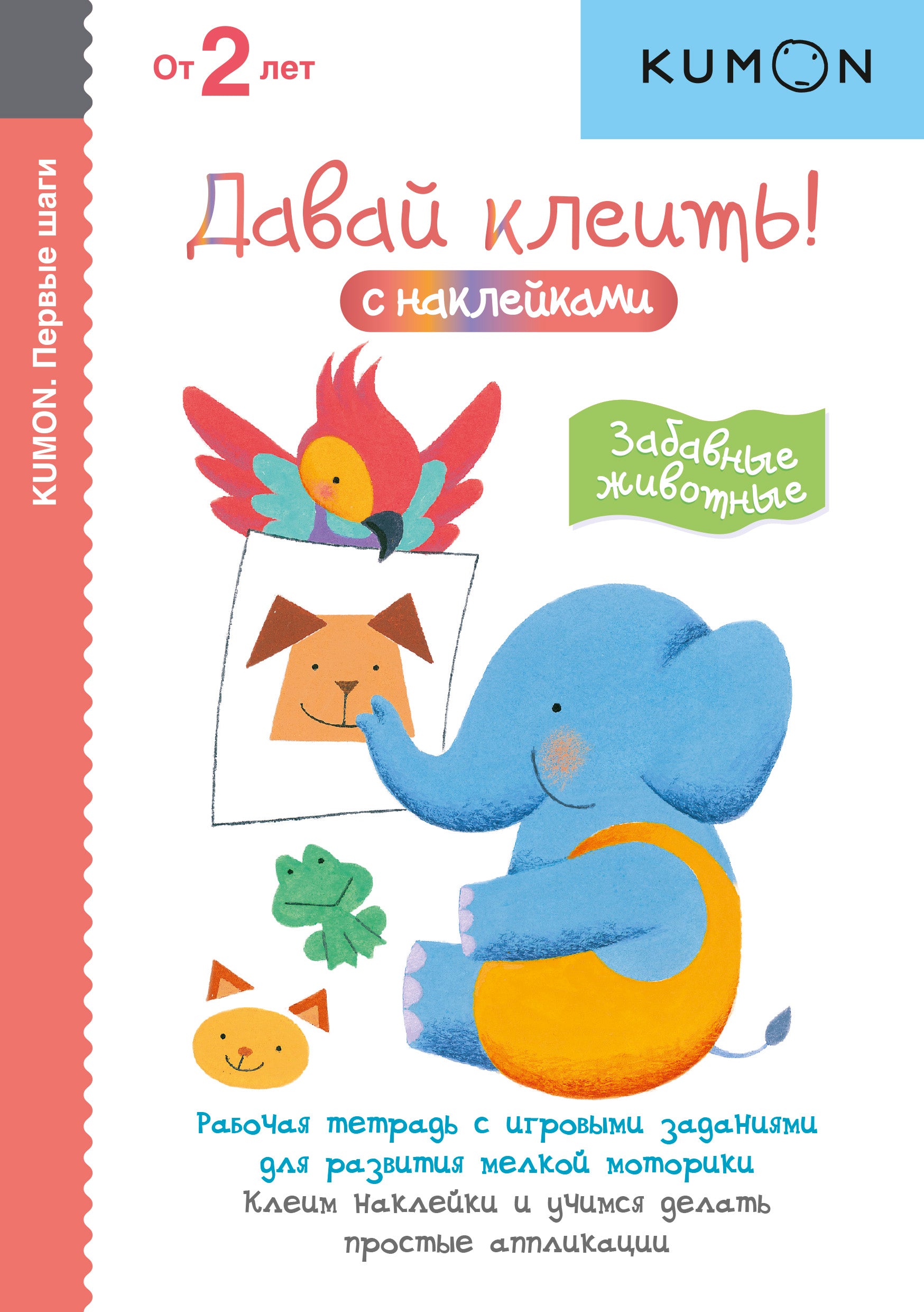 Handling time: 14 days О книгеЭтот сборник заданий является первой ступенью методики индивидуального обучения KUMON. Занимаясь по тетради, ребёнок потренирует пространственное мышление и творческие способности, научится координировать работу пальчиков, а также поймет, что такое форма, цвет и размер.Дети, которые уже работали с тетрадью "Давай клеить!", смогут закрепить и развить приобретенные навыки.Сначала ребёнок будет играть с наклейками, как хочет, потом научится приклеивать их на участки определённой формы, а после этого перейдёт к работе с клеем.Параллельно с тетрадью "Давай клеить! Забавные животные" можно:• осваивать навык работы с ножницами по тетради "Учимся вырезать";• учиться закрашивать фигуры и рисовать по тетради "Учимся рисовать";• начать знакомиться со счётом по тетради "Учимся считать от 1 до 30".А когда упражнения закончатся, закрепите пройденное с помощью этих тетрадей:• "Давай клеить! Весёлые истории";• "Давай клеить! Вкусные задания";• "Учимся клеить".Как заниматься по тетрадиЗанимайтесь по рабочим тетрадям пять дней в неделю. На выполнение каждого задания отводится около двадцати минут. Ребёнок не должен уставать от занятий, тогда он будет учиться регулярно и с большим интересом!Советы родителям1) Чтобы облегчить ребёнку задачу, вырежьте из листа с заданием картинку.2) Вы можете помочь малышу, отделяя для него от листа нужные наклейки для первых упражнений и вырезая отдельные детали в заданиях с аппликациями. Помните, главное - весело провести время вместе.3) Не забывайте хвалить ребёнка после выполнения каждого задания.4) Не пропускайте разделы "Родителям": в них мы даём советы, которые помогут ребёнку справиться с заданиями.5) Определите, сколько заданий в день будет выполнять ребёнок. Заканчивайте занятия до того, как малыш устанет.Для кого эта тетрадьТетрадь предназначена для занятий с детьми 2-4 лет. Ее могут использовать как педагоги в детских садах, клубах и центрах развития, так и родители для работы дома.Что такое KUMON?KUMON - методика индивидуального обучения, по которой занимается 4 млн детей в 49 странах. Каждая тетрадь становится ступенькой развития того или иного навыка и рассчитана на несколько недель.Ребенок самостоятельно справляется с игровыми заданиями, которые постепенно усложняются, что помогает поверить в себя. Дети, чей потенциал развивается с KUMON, опережают сверстников в скорости освоения навыков, становятся внимательными, дисциплинированными и усидчивыми.