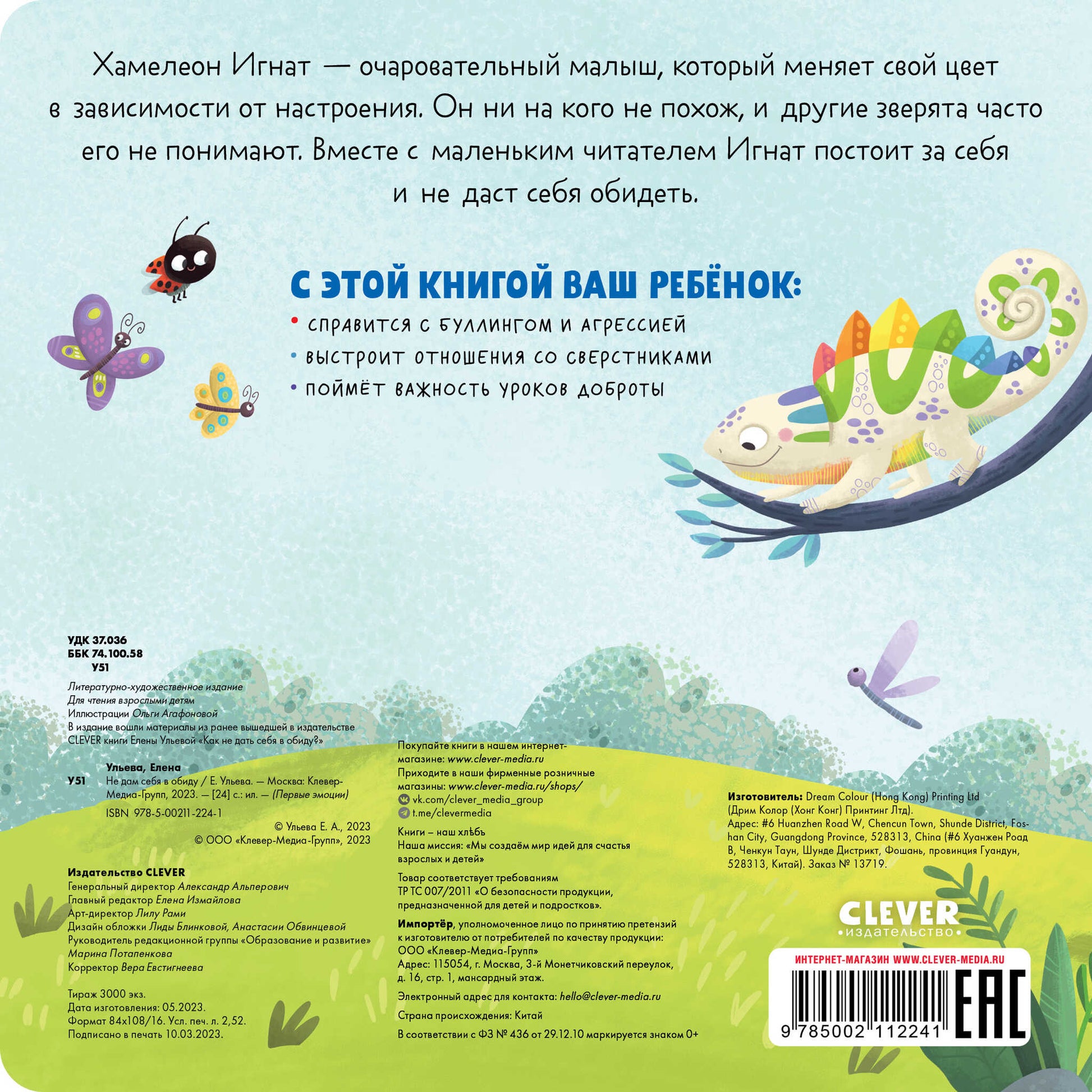 Handling time: 19 days Первые эмоции. Не дам себя в обиду/Ульева Е. Хамелеон Игнат - очаровательный малыш, который меняет свой цвет в зависимости от настроения. Он ни на кого не похож, и другие зверята часто его не понимают. Вместе с маленьким читателем Игнат постоит за себя и не даст себя обидеть. С этой книгой ваш ребёнок: • справится с буллингом и агрессией • выстроит отношения со сверстниками • поймёт важность уроков доброты