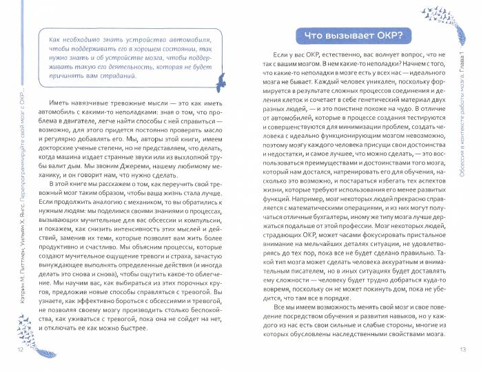 Мы привыкли высоко ценить человеческий мозг, ведь он способен ставить масштабные задачи - от строительства пирамид до высадки на Луну - и успешно решать их. Однако этот же мозг расставляет ловушки, создавая убеждения, которые мучают нас. Он порождает сомнения, вызывающие непрестанное беспокойство. И переключает внимание на мысли, которые невозможно перестать думать, - и нам начинает казаться: нужно делать что-то снова и снова, чтобы почувствовать облегчение. Мозг может помешать принять простейшее решение, бесконечно предлагая различные сценарии, так что кажется, будто правильный выбор сделать невозможно. Так возникает обсессивно-компульсивное расстройство (ОКР).В этой книге клинические психологи Кэтрин Питтмен и Уильям Янгс поделятся своими знаниями о процессах, вызывающих навязчивые мысли и действия, и покажут, как снизить их интенсивность. Объяснят возникновение мучительного ощущения тревоги и страха, вынуждающего постоянно выполнять определенные действия, чтобы ощутить какое-то облегчение. И помогут вам выбраться из этого порочного круга, предложив новые способы справляться с беспокойством.Вы освоите механизм создания новых связей в мозге, что обеспечит вам возможность жить счастливо и свободно - в соответствии с собственными целями и ценностями.