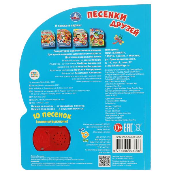 Песенки друзей СОЮЗМУЛЬТФИЛЬМ (1 кн. 10 пес.) 160х200мм 10 стр Умка в кор.30шт