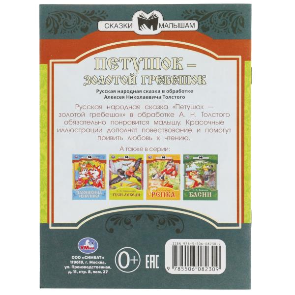 Книга "Петушок золотой гребешок. А.Н. Толстой. Сказки малышам. 145х195мм. Скрепка. 16 стр. Умка в кор.50шт". Издательство: М. : СИМБАТ. Год выпуска: 2023. Автор: Е. Хохлова - автор текста. Стандарт: 50.