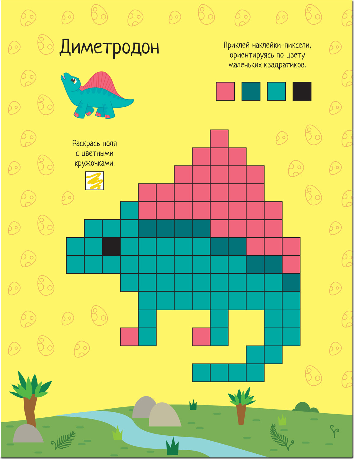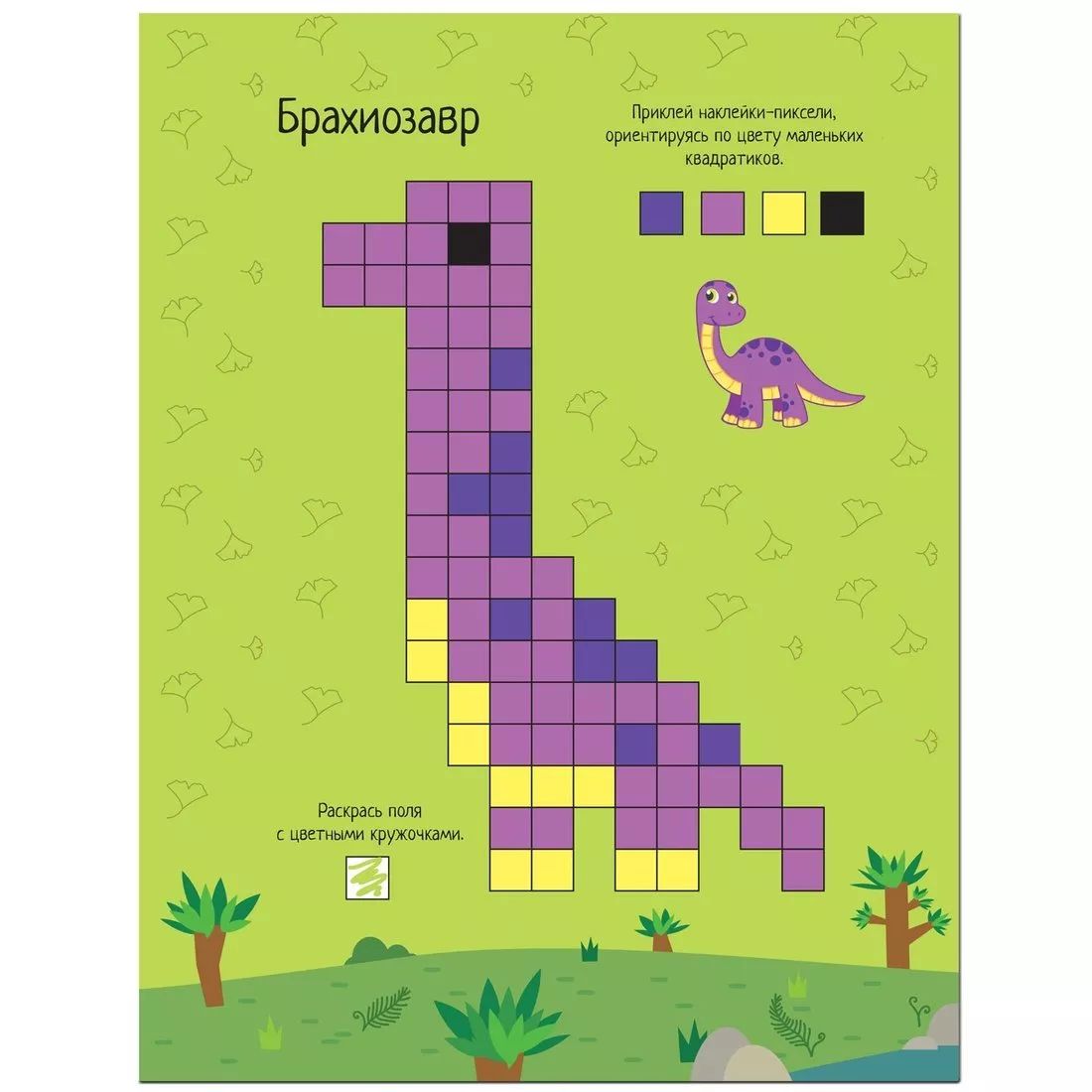 Handling time: 14 days В книге «Динозавры» серии «Пиксели. Клеим и рисуем» ребенку предстоит составлять картинки по образцу из наклеек-пикселей. В книге их 780 штук! Как по волшебству, на пустой страничке появятся изображения разных динозавров. А еще нужно будет вооружиться цветными карандашами и выполнить разнообразные задания с пикселями: дорисовать картинку зеркально, по образцу или по легенде, а также продолжить ряды. Задачки с пикселями — это отличная тренировка мелкой моторики, абстрактного мышления и координации движений. А еще это увлекательное времяпровождение для детей и даже взрослых.Материал изготовления: бумага.Рекомендованный возраст: 3 года +