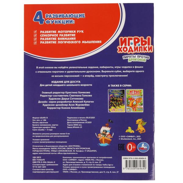 Handling time: 14 days Книга "Пираты против драконов. Активити ходилка-раскраска. 210х285 мм. 12 стр. Умка в кор.50шт". Издательство: М. : СИМБАТ. Год выпуска: 2022. Серия: Игры-ходилки. Переплет: Мягкий переплет. Количество страниц: 12. Автор: Галкова С.-редактор-составител. Стандарт: 50. Формат, мм\см: 210x285. Страна производитель: РОССИЯ. Высота: 22. Ширина: 29. Глубина: 0.5.
