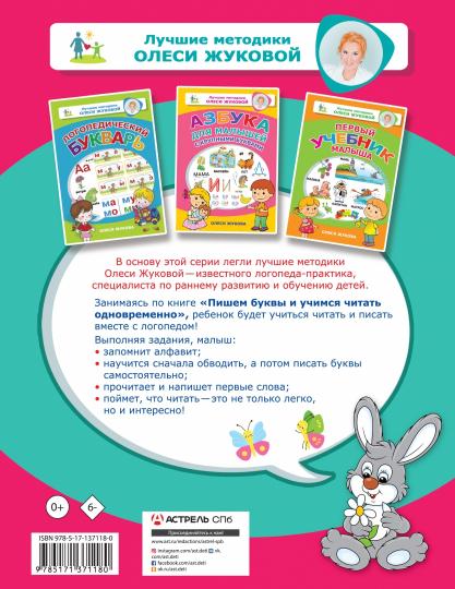 Handling time: 14 days Пишем буквы и учимся читать одновременно. Жукова О.С. Лучшие методики Олеси Жуковой Эта книга создана специально для детей раннего дошкольного возраста. Выполняя простые и увлекательные задания, малыш выучит алфавит, научится писать буквы и простые слова, овладеет первыми навыками чтения. Для дошкольного возраста.