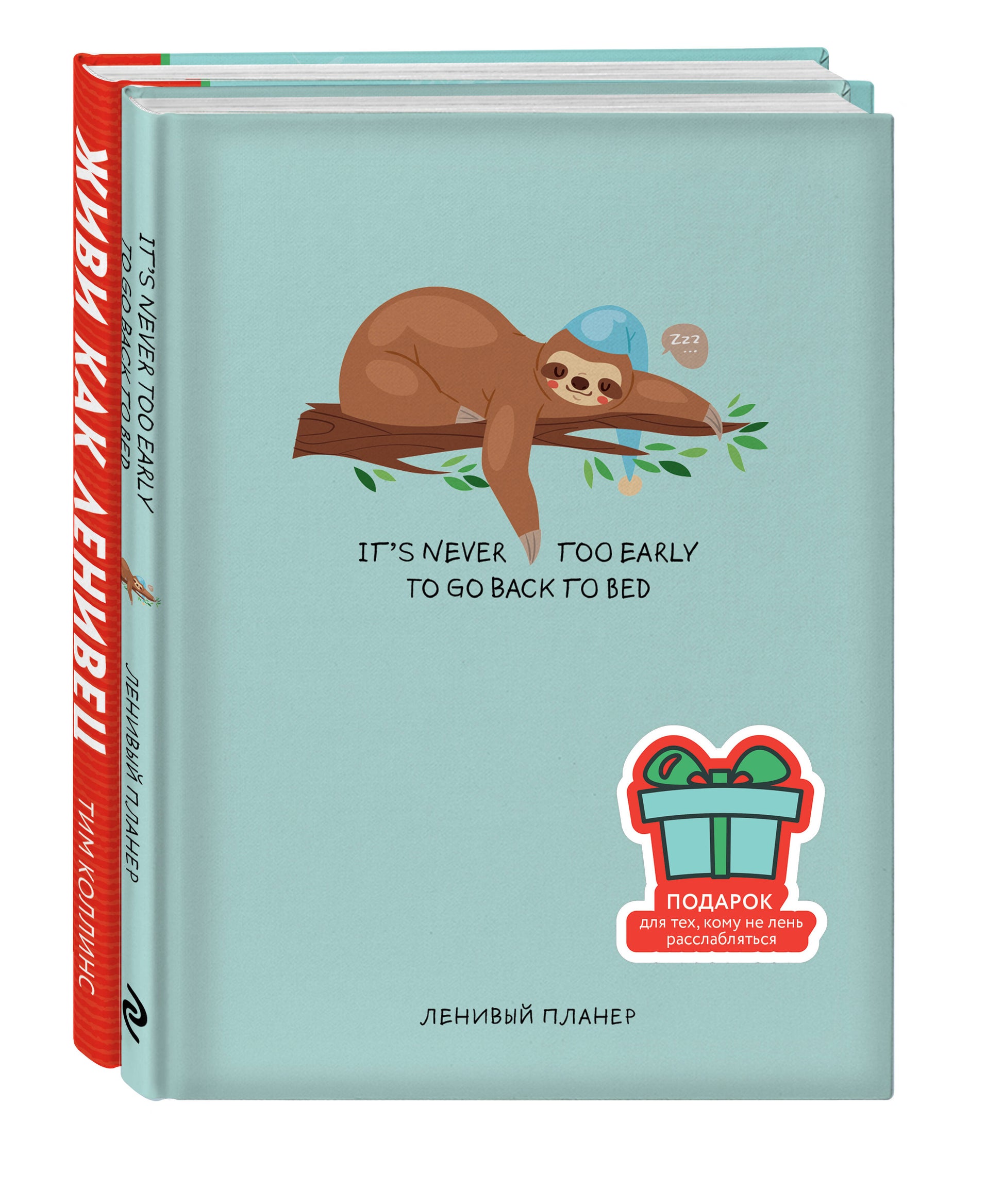 ПОЗНАЙ СИЛУ ЦЕЛИТЕЛЬНОЙ ЛЕНИ С ПОДАРОЧНЫМ КОМПЛЕКТОМ, В КОТОРЫЙ ВОШЛИ КНИГА И ЛЕНИВЫЙ ПЛАНЕР.1) Живи как ленивец. Уроки целительного пофигизма от самых счастливых созданий на ЗемлеЗнаете, почему ленивцы все время улыбаются? Они счастливы. Знаете, почему они счастливы? Потому что никуда не спешат. Им не знаком ни стресс, ни перегрузки. Они плевать хотели на дедлайн, обхват талии, карьеру и новую машину соседа. "Каждый современный человек станет куда счастливее, если найдет в себе ленивца", — считает Тим Коллинс, имевший удовольствие наблюдать этих чудесных созданий в лесах Амазонии. Его книга — это сборник терапевтических уроков, которые помогут отпустить проблемы, покончить с тревожностью и начать жить здесь и сейчас.2) It's never too early to go to bed, Ленивый планер (А5, 128 стр.)Ежедневник на год с милыми ленивцами и демотивирующими фразами.