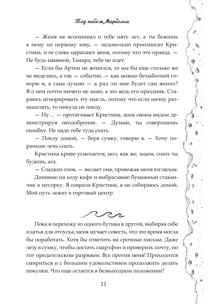 Handling time: 19 days Автор: Максимова Адриана, «Под небом Марбельи»: Отправляясь в отпуск в солнечную Марбелью, я меньше всего мечтала влюбиться. Но у любовь свои планы. И когда я была уже готова поверить в то, что счастье возможно, прошлое накрыло меня с головой вынуждая сделать сложный выбор. 5 причин купить «Под небом Марбельи» Адрианы Максимовой: 1. Курортный роман — солнце и море — главные декорации! 2. Семейные интриги и тайны прошлого. 3. Сильная героиня и романтичный герой. 4. Сложный выбор может стоить счастья. 5. Страсть, не спрашивающая разрешения.