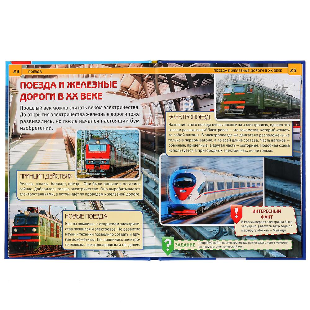 Поезда. (Энциклопедия А4 с развивающими заданиями). Тв. переплет. 197х255мм. 48 стр. Умка в кор.15шт