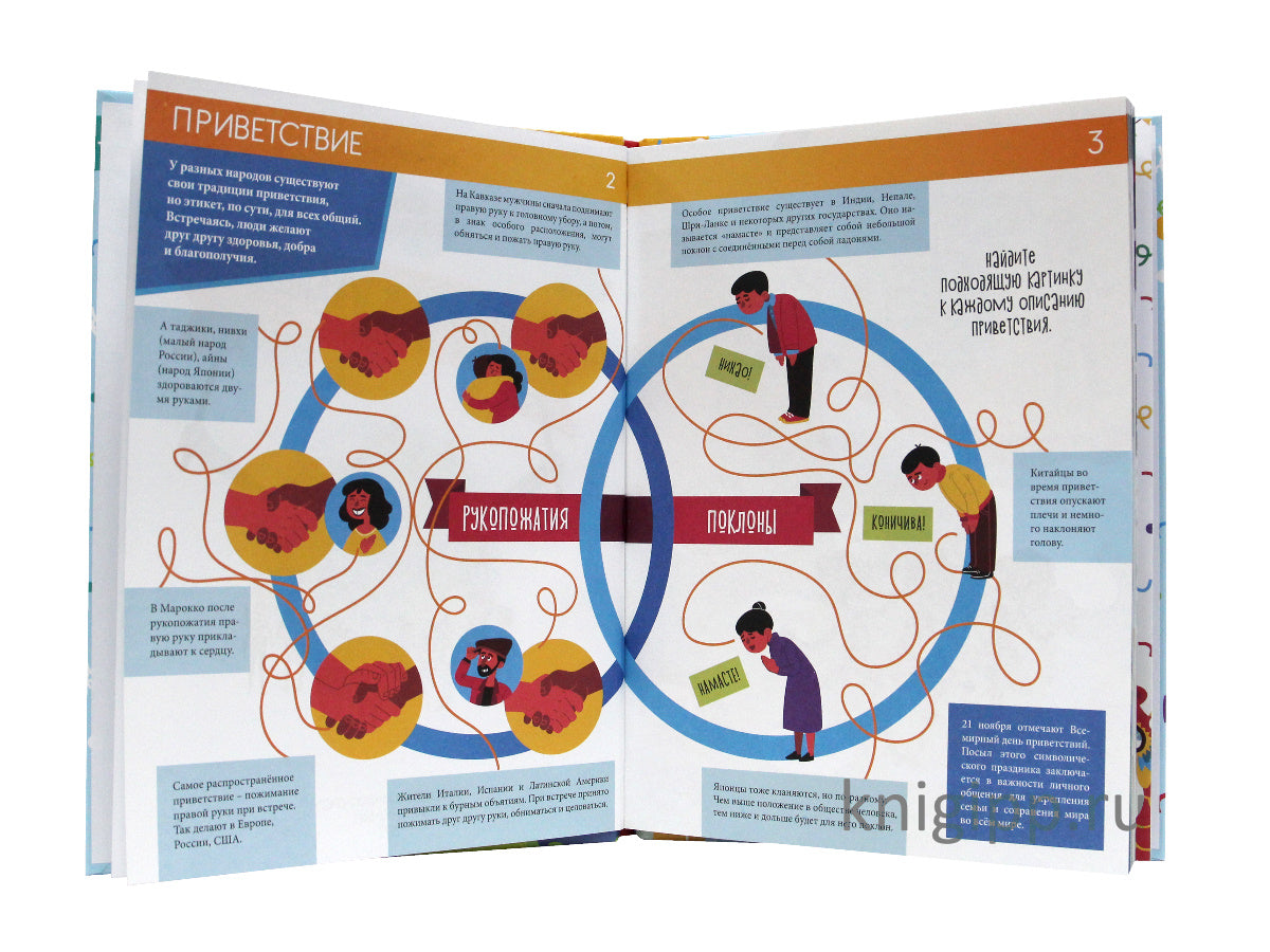 У каждого народа есть свои традиции и праздники. Многие из них могут показаться смешными, странными или даже шокирующими. "Что за сомнительный экстрим - бегать от разъярённыхбыков или догонять головку сыра, летящую с крутого холма со скоростью 110 километров в час?" - справедливо заметим мы. Но не в каждом уголке земного шара поймут и наши обычаи."Напрасно жених с невестой веселятся и отплясывают - непросто им придётся в семейной жизни" - попробуют предостеречь нас жители Конго. В детской энциклопедии "Праздники и традиции со всего света" мы рассказываем о том, как в разных странах принято здороваться, отмечать Новый год и день рождения, в какой национальной кухне есть блюда из насекомых, а где по-прежнему предпочитают сырое мясо или рыбу. Действительно, различий в культуре достаточно, но главные ценности во всём мире одни: благополучие и здоровье близких, добро и мир во всём мире! Желаем вам занимательного чтения!Для чтения взрослым детям.