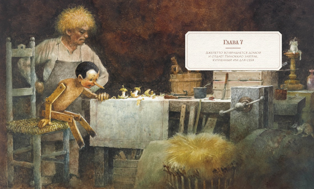 Знаменитая сказка итальянского писателя Карло Коллоди о приключениях деревянного мальчишки Пиноккио обрела в этом издании новую жизнь благодаря великолепным иллюстрациям австралийского художника Роберта Ингпена. Он получил всемирную известность как автор и иллюстратор более сотни различных книг. В 1986 году Р. Ингпен был удостоен Международной премии имени Х. К. Андерсена за вклад в детскую литературу. Роберт Ингпен проиллюстрировал такие произведения классической литературы, как "Остров Сокровищ", "Книга джунглей", "Алиса в Стране чудес", "Алиса в Зазеркалье", "Приключения Тома Сойера", "Питер Пэн и Венди", "Ветер в ивах", "Рождественская ёлка", "Удивительный волшебник из Страны Оз", "Таинственный сад", "Вокруг света в восемьдесят дней", "Сказки" Киплинга. Издательство "Махаон" представляет вам эти замечательные книги.Для среднего школьного возраста. Пять причин купить 1Роберт Ингпен - всемирно известный австралийский художник, признанный? мастер книжной? иллюстрации. 2За свое непревзойденное мастерство Ингпен получил множество премий, в том числе золотую медаль Х. К. Андерсена - высшую награду Международного совета по детской литературе. 3Последний большой проект Ингпена - иллюстрации к серии книг с классическими произведениями детской литературы, которая пользуется огромной популярностью у читателей со всего мира. 4Неповторимый стиль работ Ингпена помогает по-другому посмотреть на уже знакомые, любимые с детства книги. 5Бессмертные произведения с иллюстрациями Ингпена станут прекрасной основой для библиотеки маленького читателя, который только начинает знакомиться с шедеврами мировой литературы.