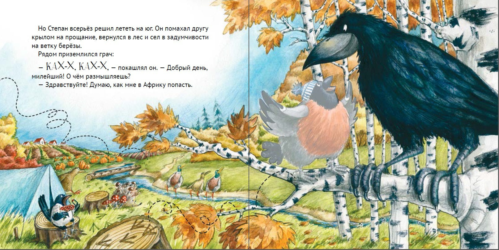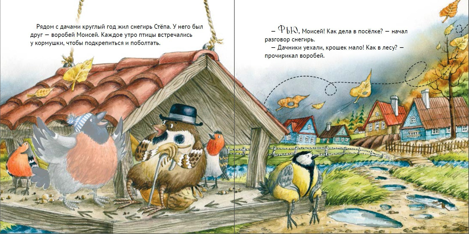 Handling time: 14 days В лесу рядом с дачами живет снегирь-непоседа по имени Степан. Ему скучно круглый год оставаться на одном месте, и он решает отправиться на юг. Но как маленькой птичке преодолеть такой большой путь? На помощь ему приходят другие пернатые - мудрый грач, два веселых гуся и белоснежные цапли. Сможет ли Степа добраться до берегов Африки и понравится ли ему вдали от родины? Книга расскажет не только о приключениях упрямого снегиря, но и познакомит с оседлыми и перелетными птицами. Внутри книги игрушка-закладка. Передвигай ее от страницы к странице и оживляй историю! Для чтения взрослыми детям старшего дошкольного возраста.