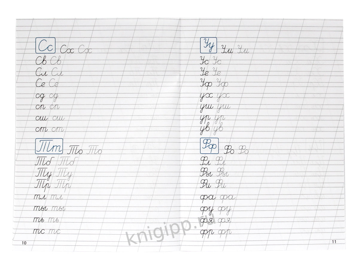 В прописи представлены варианты классических соединений заглавных и строчных букв русского алфавита. Упражнения направлены на формирование у детей навыков красивого безотрывного письма, освоив которые ребёнок без труда сможет разборчиво и аккуратно писать слова. Издание разработано как для домашнего обучения, так и для использования на уроках в школе.