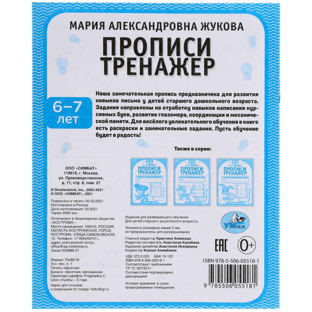 Прописи. М.А. Жукова 6-7 лет. Тренажер красивого почерка. Рабочая тетрадь 16 стр. Умка в кор.50шт