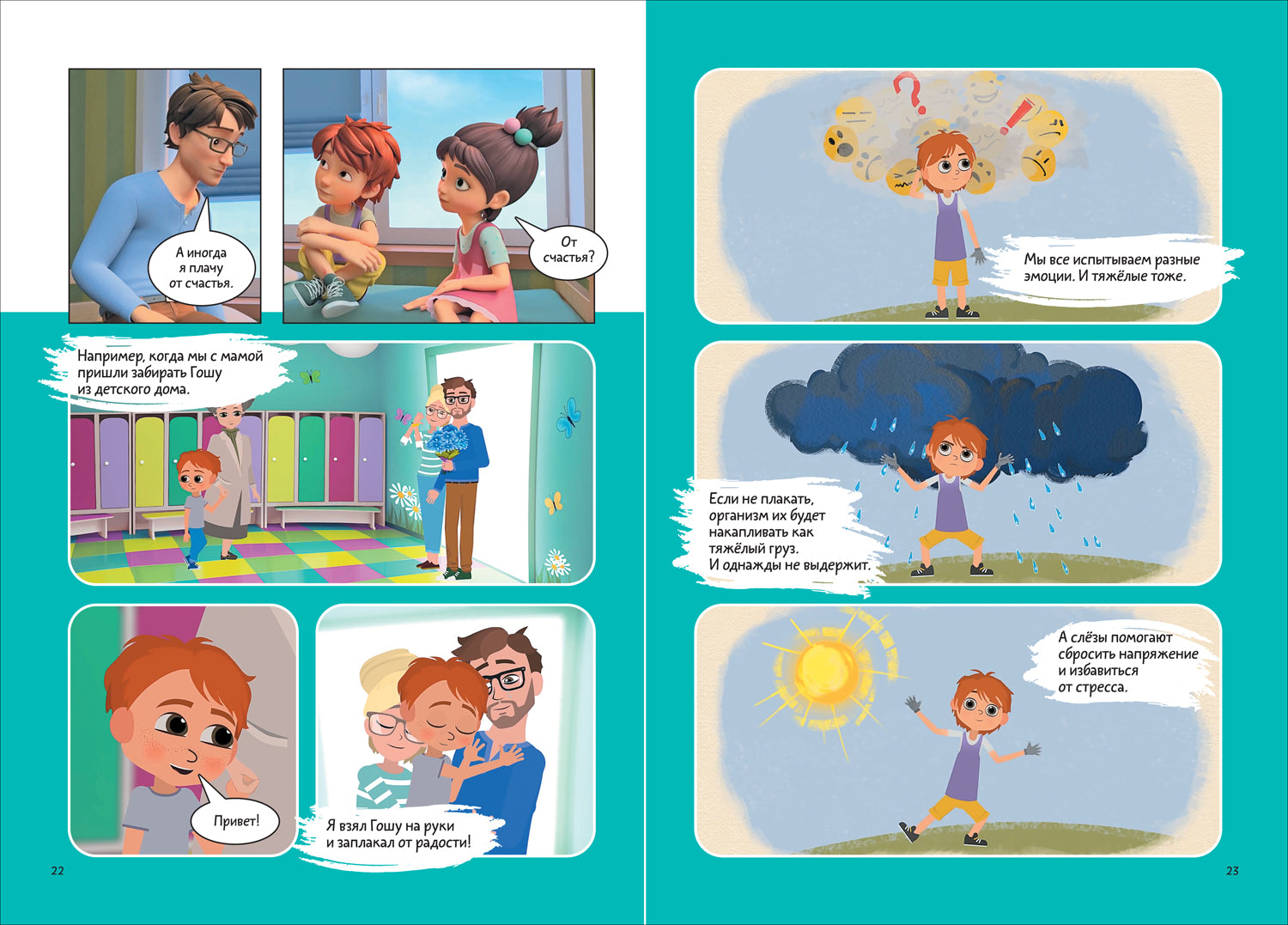 Любимый мультсериал — теперь в формате комиксов! Как и все дети, брат и сестра Гоша и Мира познают мир, играют, иногда ссорятся и попадают в трудные ситуации: дома, в школе или во дворе. Что делать, если тебя обижают? Как справиться со злостью? Почему плакать — совсем не стыдно? Как научиться общаться и завести новых друзей? На эти и другие важные вопросы Мире и Гоше помогают ответить мама и папа. А комментарии психолога к каждой истории помогут вам вместе с ребенком разобрать проблему, проговорить важные моменты и обсудить, как действовать в сложной ситуации.