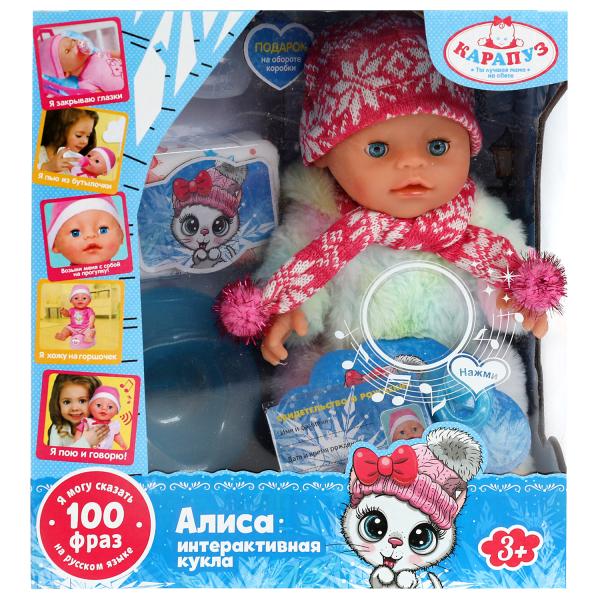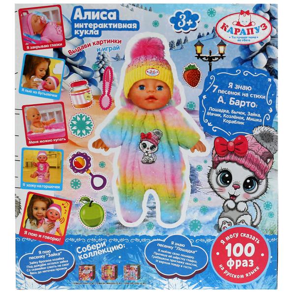 Пупс озвуч Барто А. Алиса 30см, пьет, пис, закр глаза, 100 фраз, 4 акс КАРАПУЗ в кор.12шт