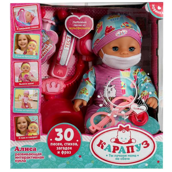 Пупс озвуч Чуковский К. Алиса 30см, доктор, пьет, пис, закр глаза, 7 акс КАРАПУЗ в кор.12шт