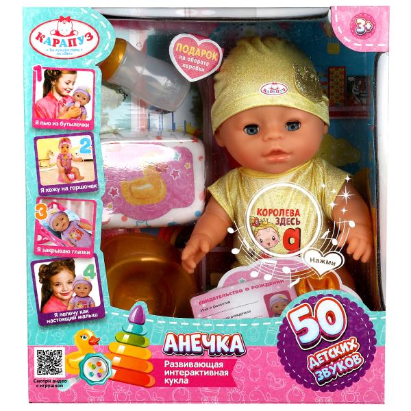 Handling time: 14 days Игрушка "Пупс озвуч 30см, пьет, писает, закр. глазки, 4акс, 50 звуков КАРАПУЗ в кор.12шт". Размер: 0.16613.